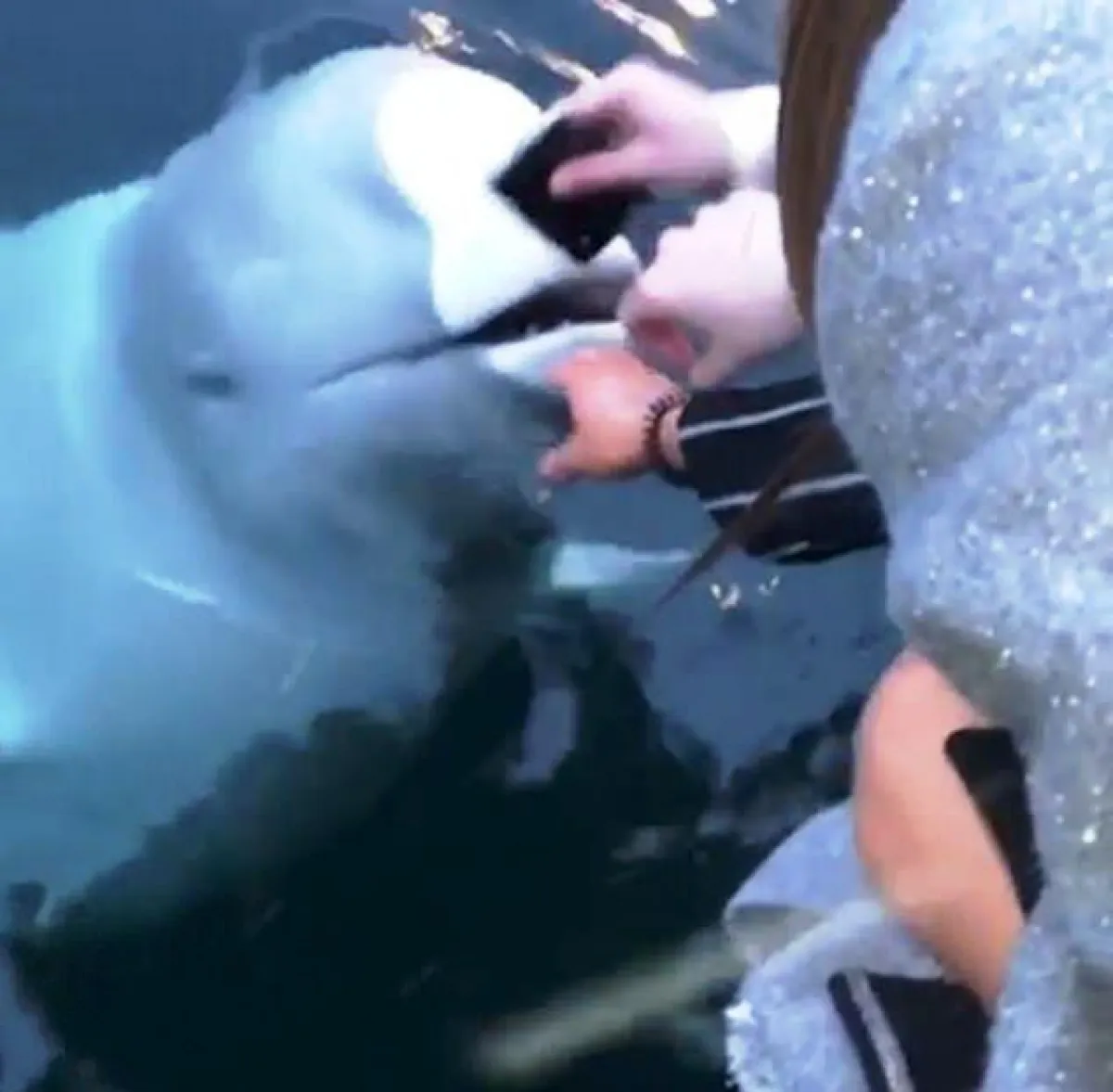 تداول رواد مواقع التواصل الاجتماعي، مقطعاً طريفاً يظهر سلوكاً لطيفاً من حوت أبيض على أحد السواحل النرويجية، حيث قام بإعادة هاتف «آيفون» سقط من أحد السياح عن طريق الخطأ، وبادر الحوت للغوص إلى الأسفل والتقاطه ثم الصعود إلى السطح، حينها تمّ تصويره ببطء خارج المحيط بوجود الهاتف في فمه.