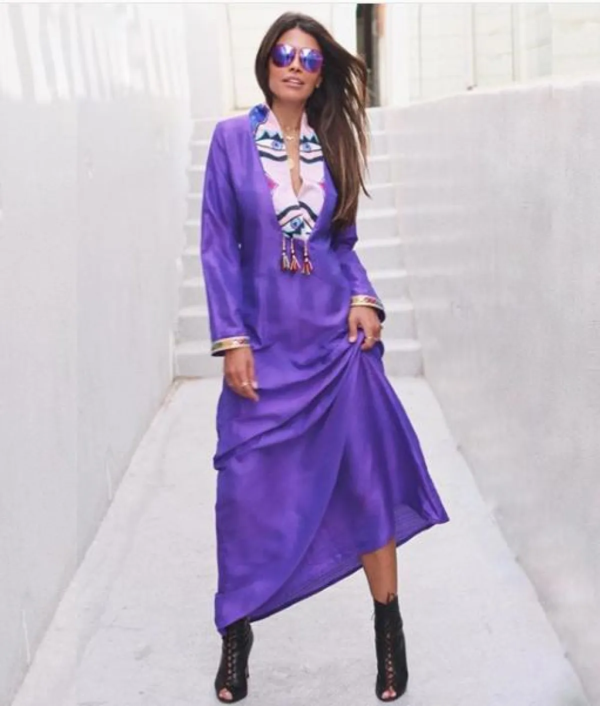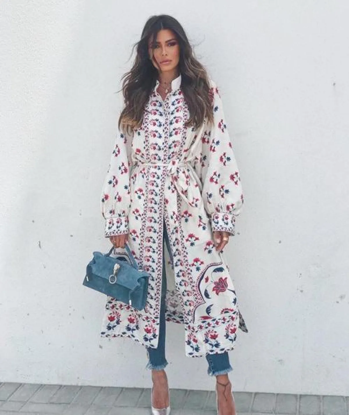 لوك مميز شاهدنا به فوزازا مؤخرًا مثاليّ لاطلالات رمضان، حيث نسقت بنطلون جينز بقَصّة ضيّقة مع قميص طويل يشبه العباية، باللون الأبيض ومطزر برسومات الورود الملونة، وأكملت الاطلالة بحذاء بكعب عالٍ باللون الأبيض، وشنطة يد باللون الأزرق، وبعض المجموهرات الذهبية الناعمة، وقد بدت غاية في الأناقة والعصرية في آنٍ واحد.