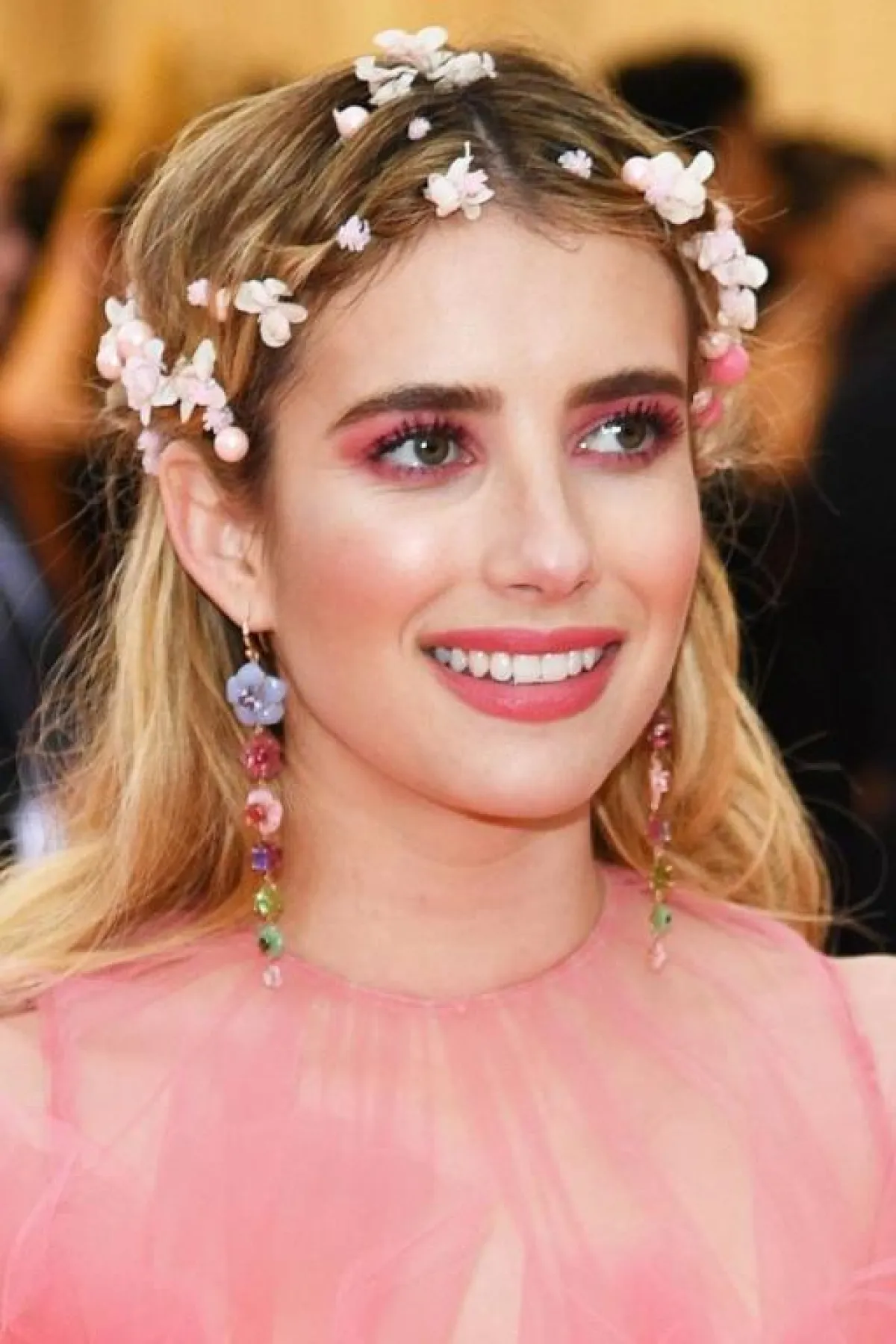 قدّمت إيما روبرتس إلهاماً كبيراً لحفل زفاف صيفي ومهرجاني، مع مكياجها الوردي في حفل MET Gala. لضمان توهج بشرتها، تزيّنت الممثلة بظلال عيون وردية زاهية منفّذة بأسلوب دخاني، إلى جانب أحمر الخدود وأحمر الشفاه المضيئين، في إطلالة ابتكرها فنانة المكياج نيكي دي رويست Nikki DeRoest، والذي بدا متناغماً جدّاً مع زينة الورود واللؤلؤ على شعرها الناعم.