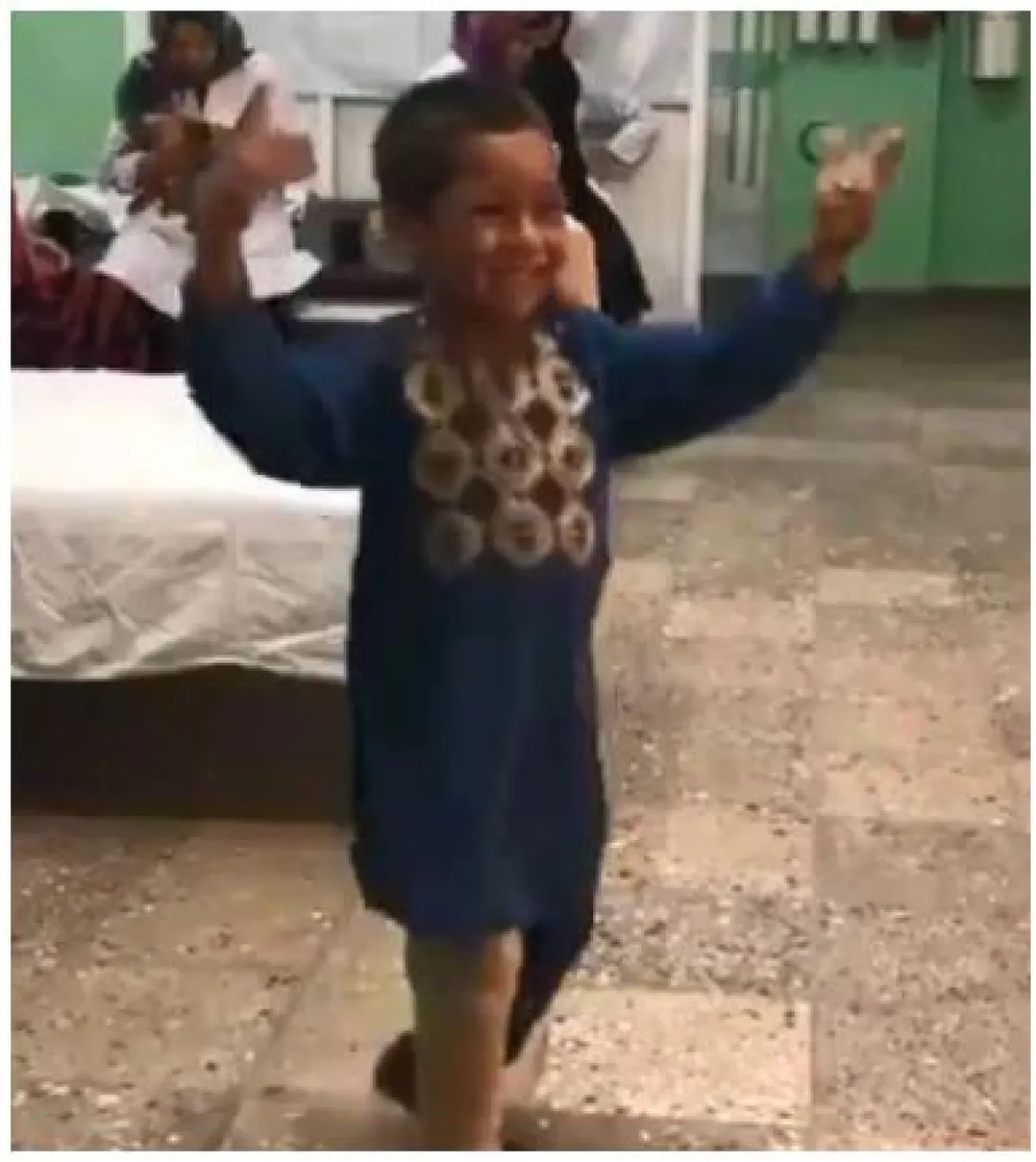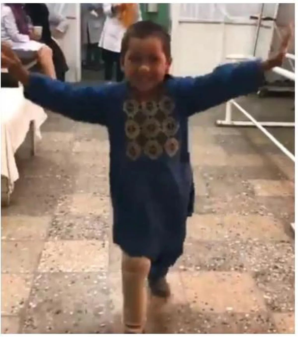 رقص طفل أفغاني فرحًا في المستشفى، بعد تثبيت ساق اصطناعية له، فقامت أسرته بتسجيل فيديو له انتشر عبر الإنترنت، وبحسب موقع «إنديا توداي»، فإن الطفل أحمد سيد رحمن، تم تجهيزه مؤخراً بساق صناعية جديدة.