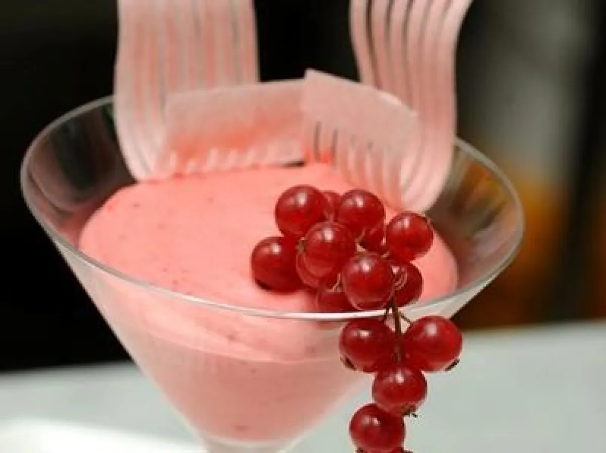 3-بعدها، تضاف الكمية المتبقية من خليط التوت البارد، ويخفق جيداً. يزيّن بحبات التوت.