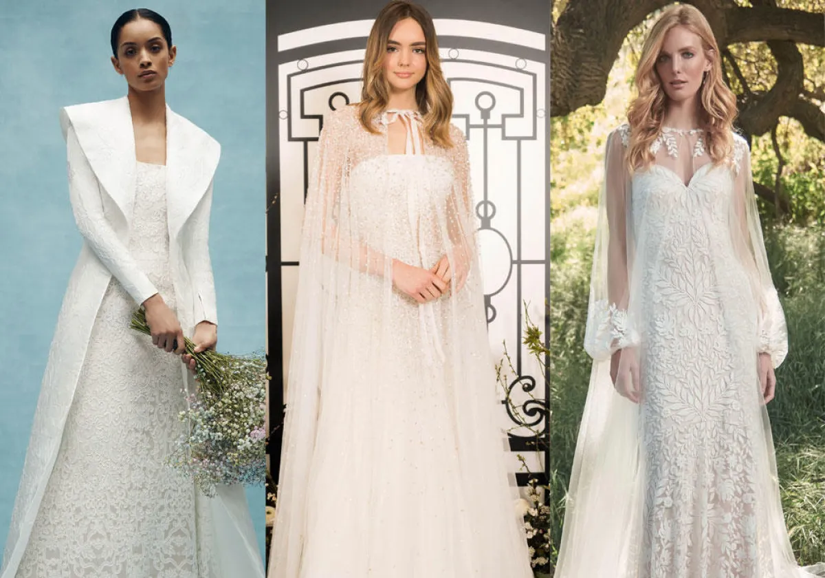 شاهدي أبرز صيحات السترات الطويلة مع فساتين الزفاف لتستوحي منها إطلالتك في يوم العرس!