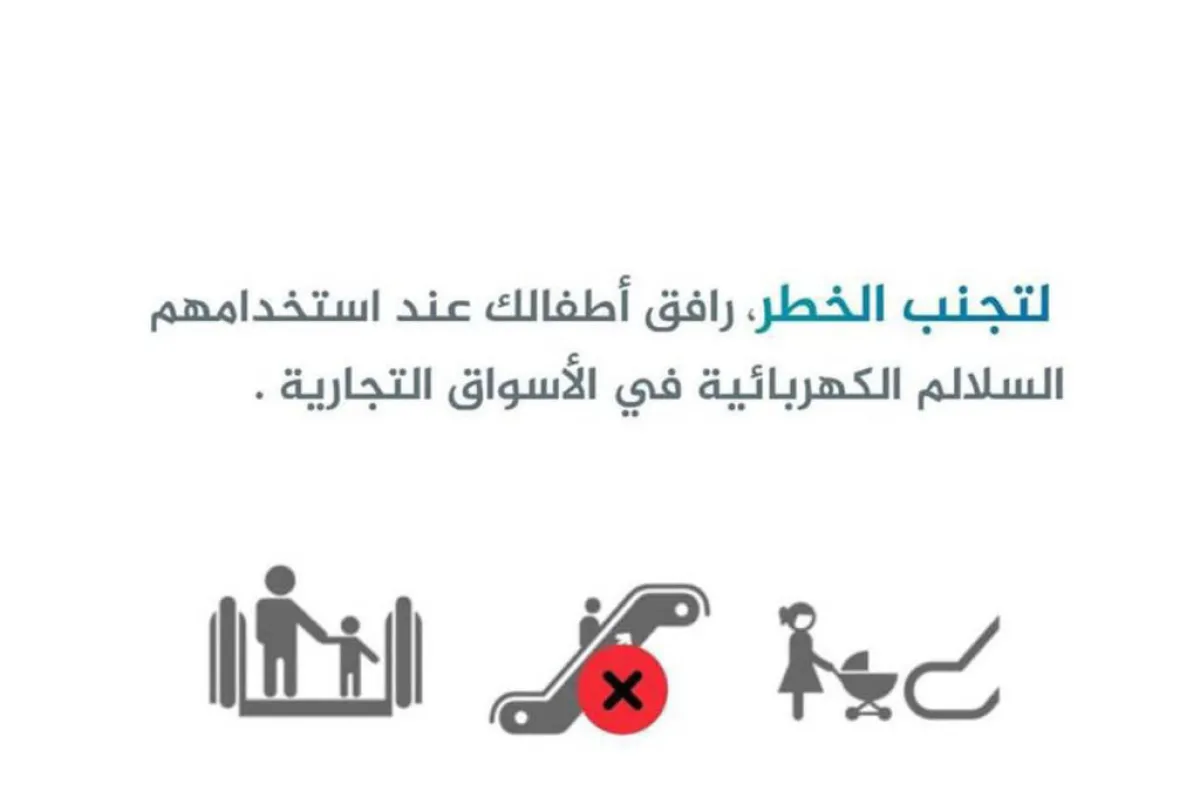 وأضافت المديرية عبر حسابها الرسمي على موقع التواصل الاجتماعي «تويتر» أنه يمكن تجنّب خطر السلالم الكهربائية على الأطفال بمرافقتهم وعدم تركهم لاستخدامها فرادي.