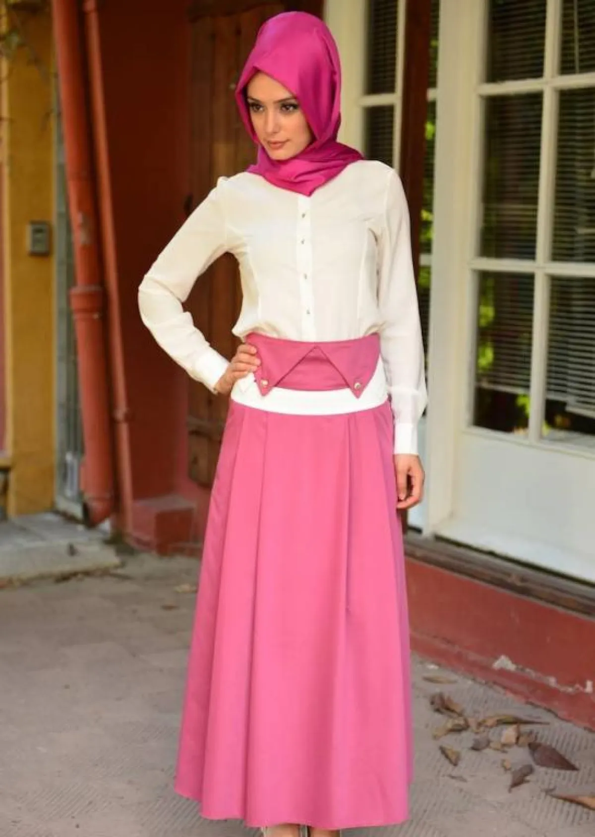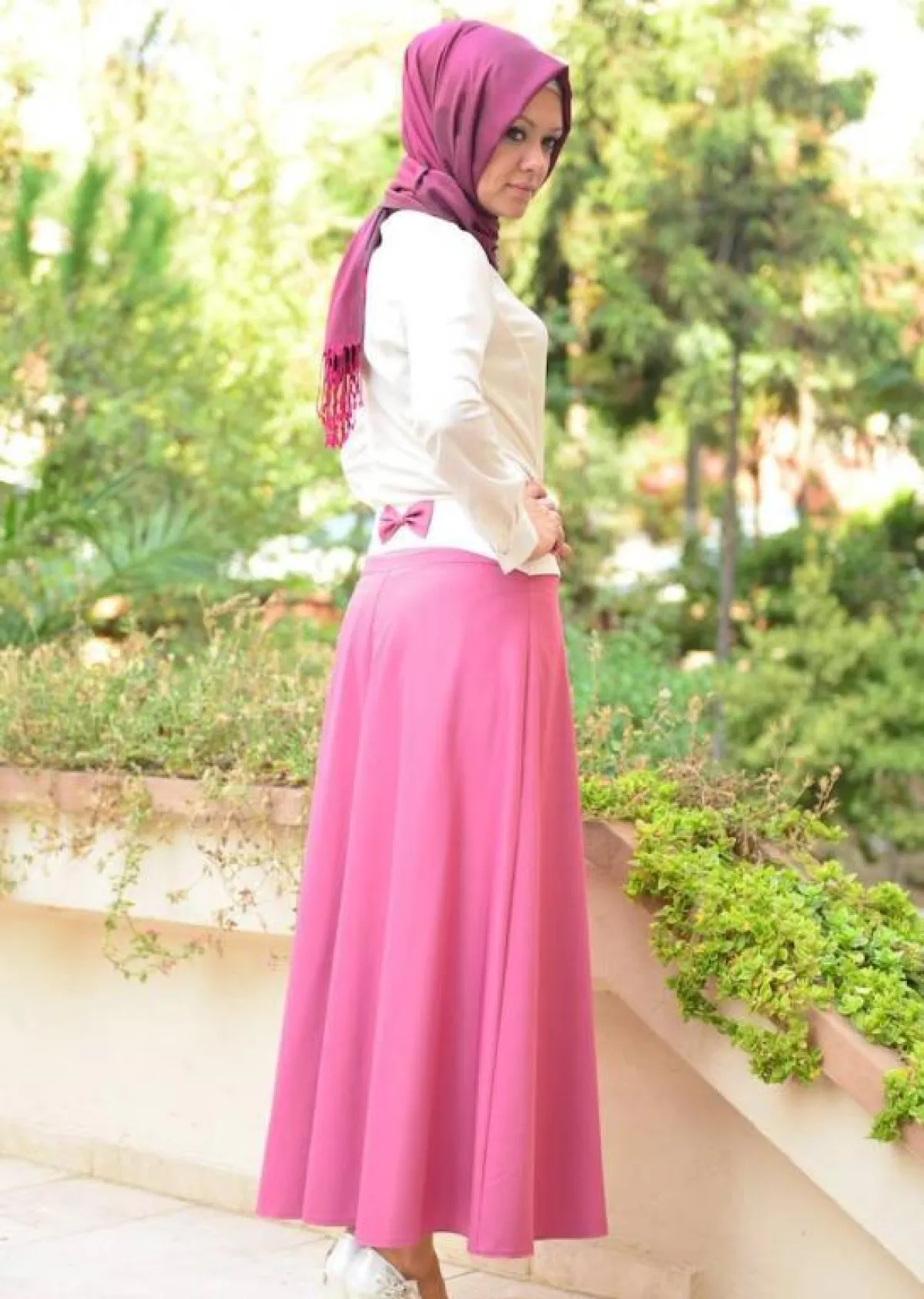 - يمكنك تنسيق اكسسوارات بألوان زهرية، مع حجاب (شيلة أو إيشارب) باللون الزهري أو بتدرجاته، مع ملابسك الحيادية، لإضافة لمسة مميزة.