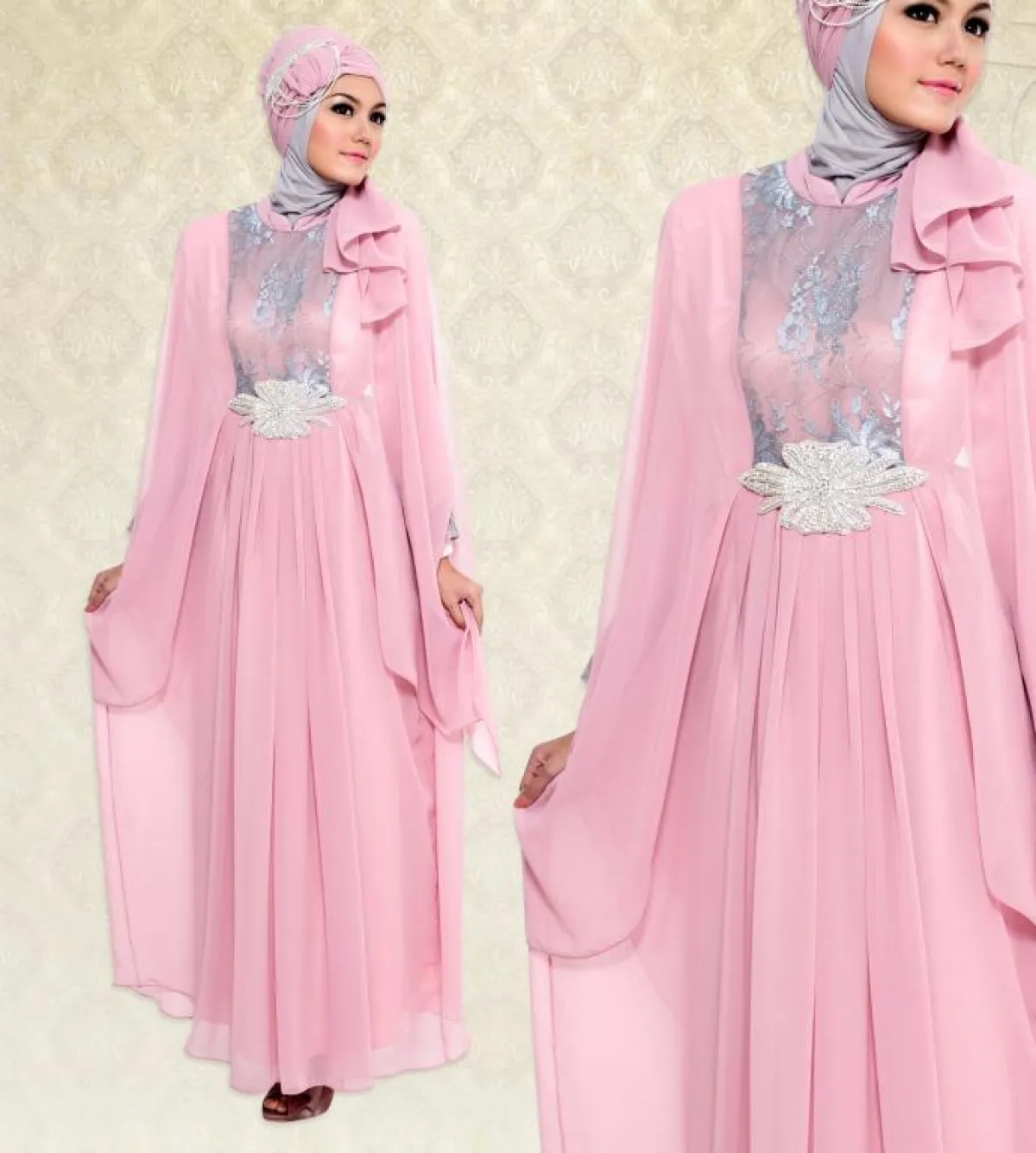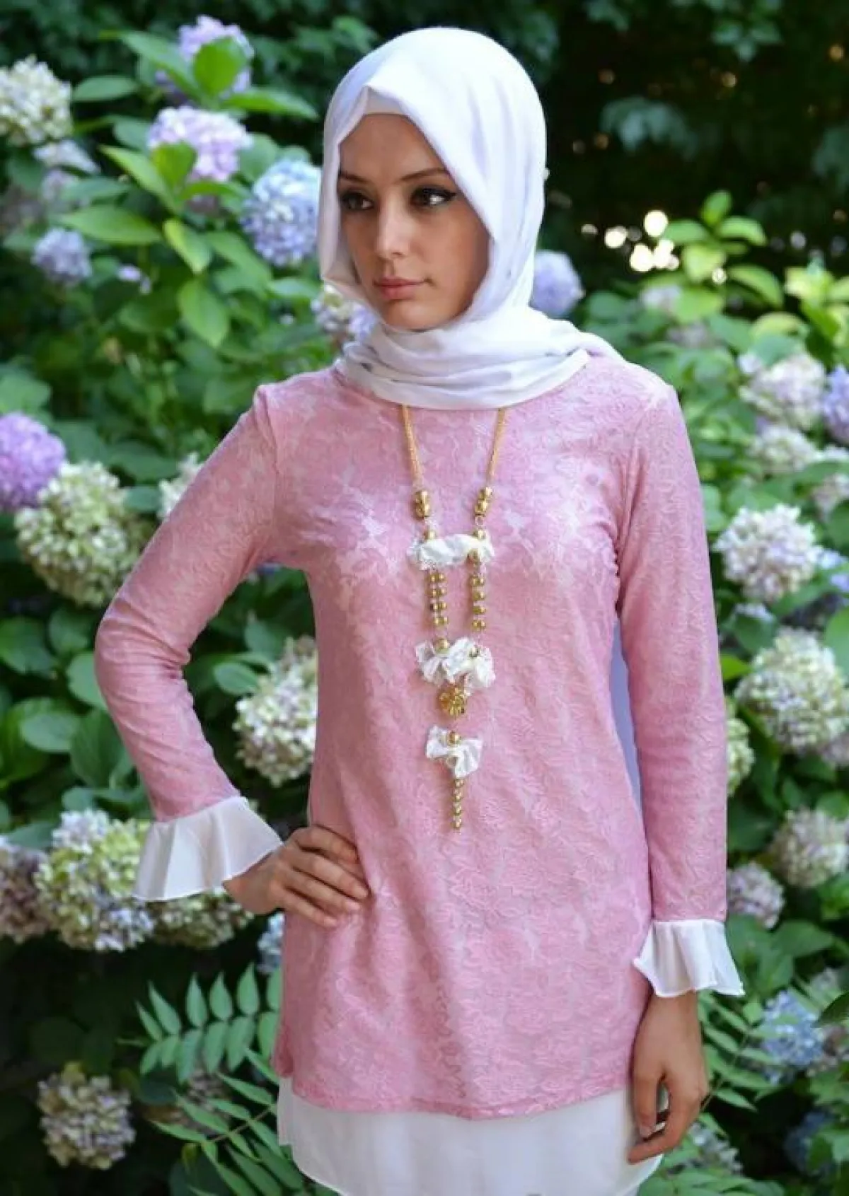 الزهري بما يحمله من رقة ونعومة هو خيار موفق للمحجبة، إذ يضيف، بلمسة صغيرة، إلى أزيائها أنوثة مميّزة.