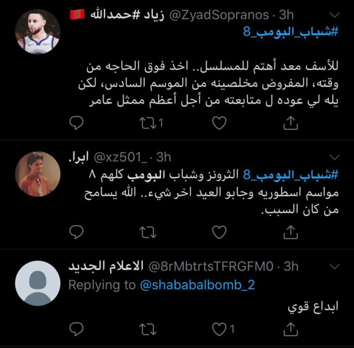 يذكر أن مسلسل "شباب البومب 8"، من بطولة: فيصل العيسى، وعبدالعزيز الفريحي، ومحمد الدوسري، ومهند الجميلي، وسلمان المقيطيب وغيرهم، ويشارك فيه عددٌ من النجوم ضيوفَ شرفٍ، إضافة إلى عدد من نجوم الـ "سوشال ميديا"، ويُخرجه سمير عارف.