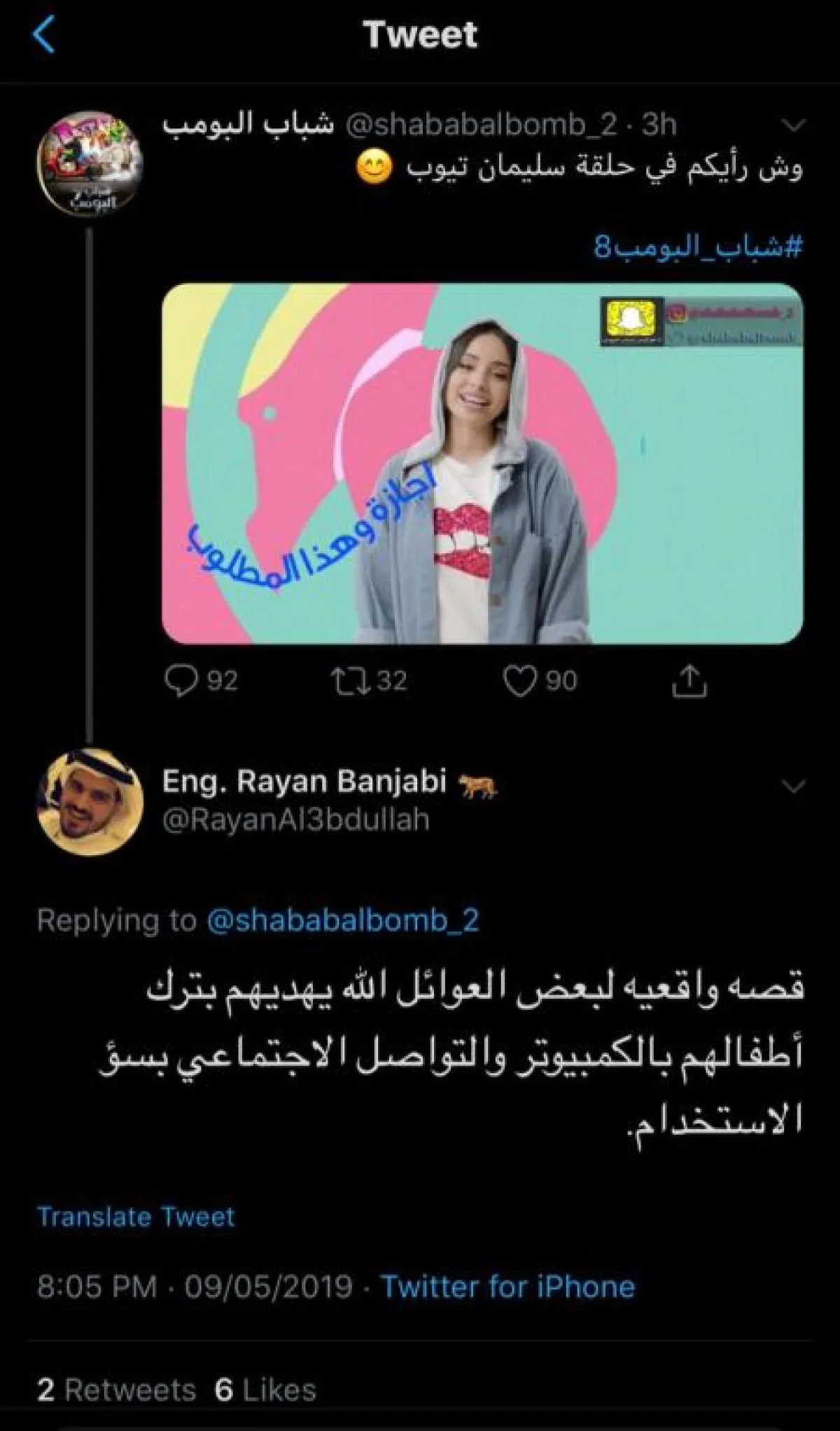 تطرقت الحلقةُ الرابعة من مسلسل "شباب البومب8" التي كانت باسم "سليمان تيوب " إلى ظاهرة الـ" يوتيوبر " ، وهو الشخص صانع مقاطع الفيديو الصغيرة على اليوتيوب ، وإدمان وسائل التواصل الاجتماعي والانسياق خلفها لتحقيق المال والشهرة والأثار المترتبة على ذلك ، من التأخر الدراسي واقتحام خصوصية الأفراد والتخلي عن العادات والتقاليد .