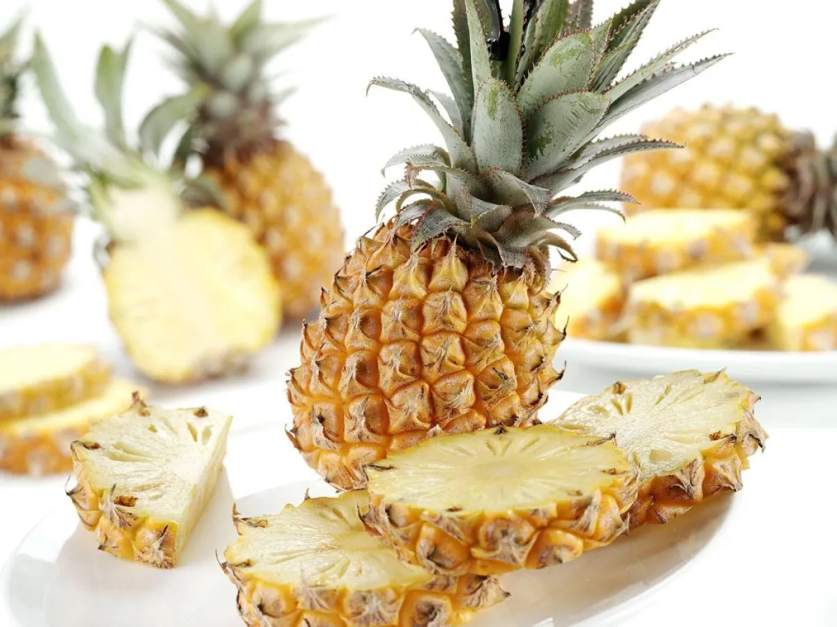 -4 قطع من الأناناس المعلّب مع نصف كوب من عصير الأناناس