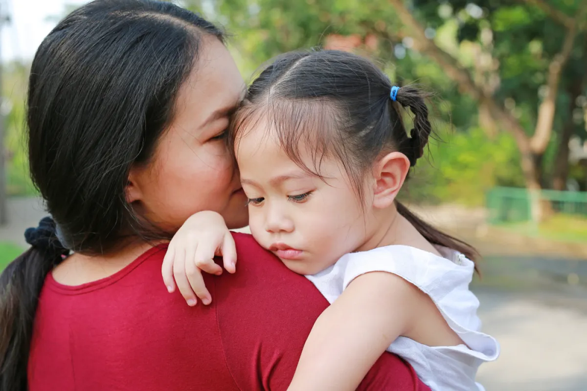 - أشعري طفلك بالأمان ودعي عينيك تكلم عينيه، وأصابعك تدغدغ أرنبة أنفه واحكي له القصص الشيقة، واحذري اللجوء للضرب أو الزجر لإيقافه عن البكاء أو حالة عصبيته الزائدة.