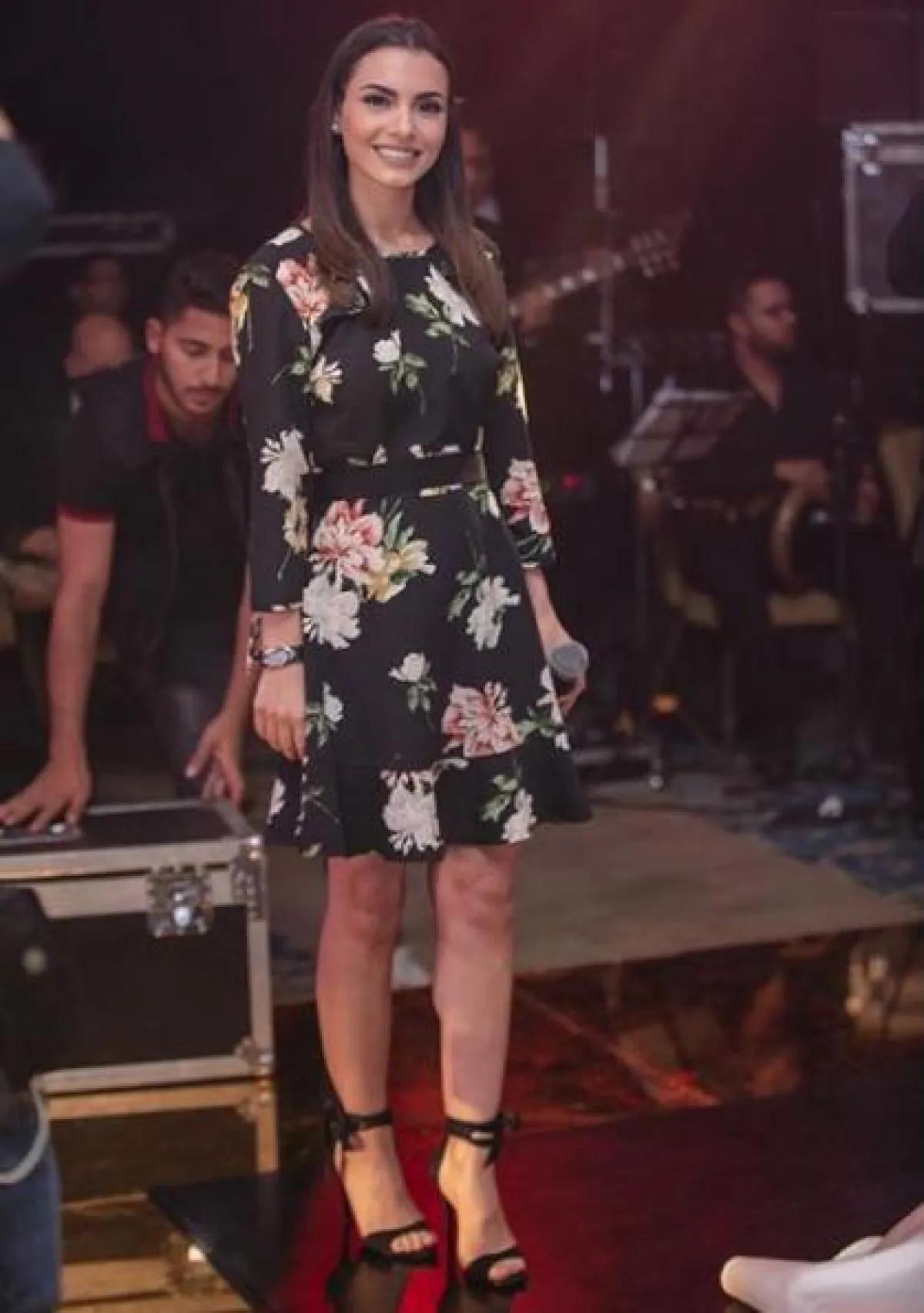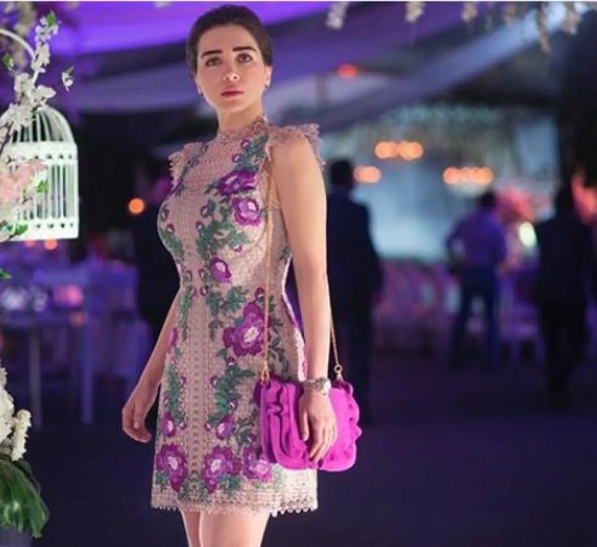 ياسمين صبري في فستان قصير معرق بالورود: