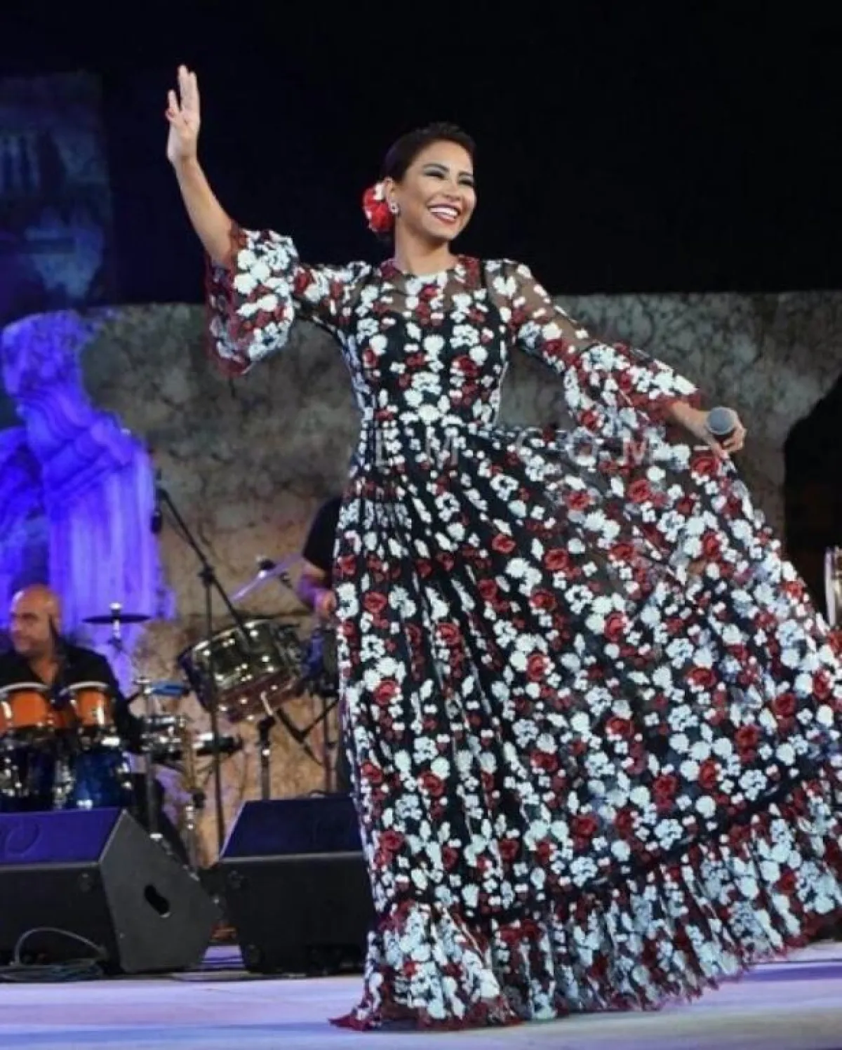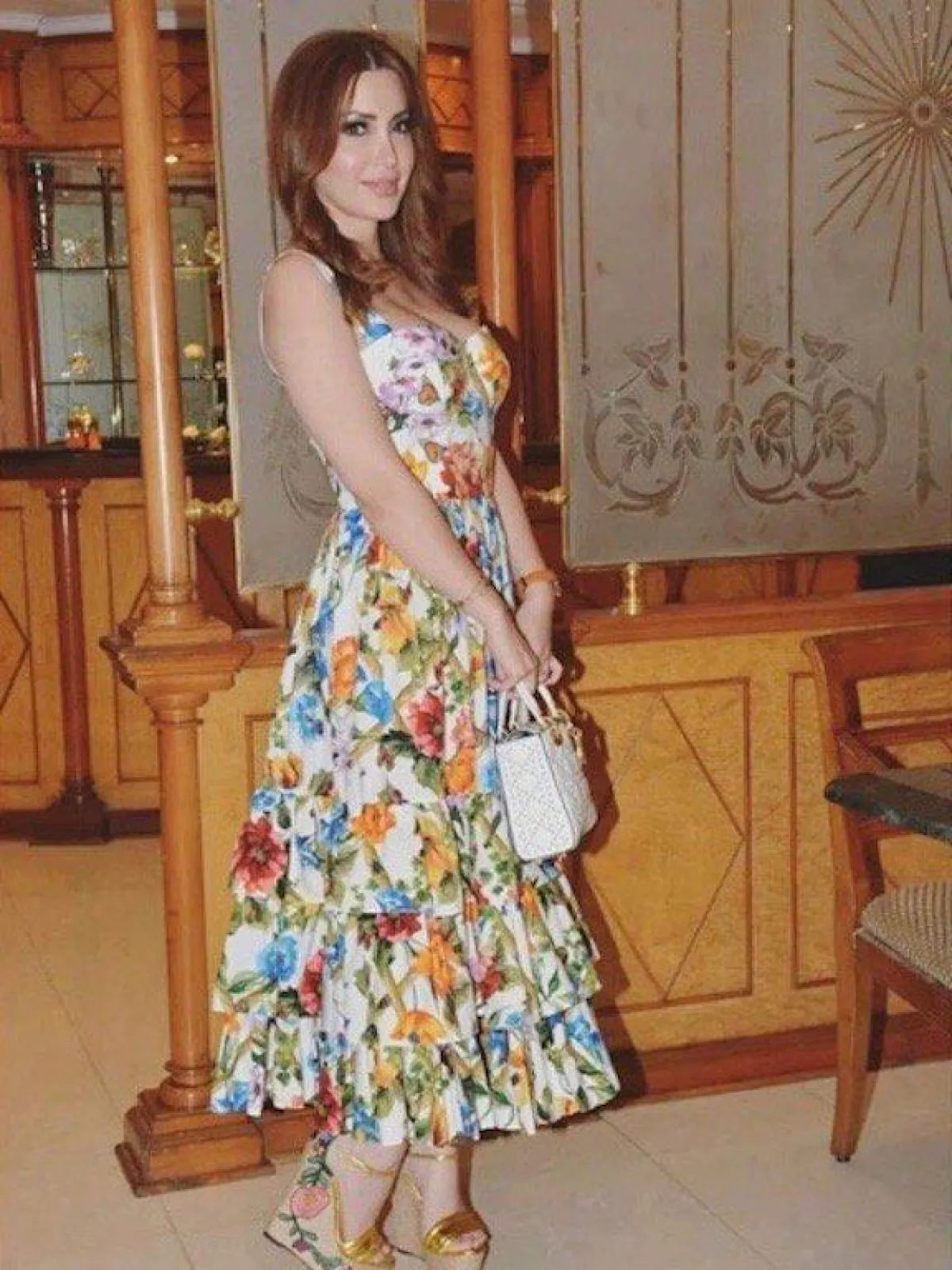 نانسي عجرم في فستان ماكسي معرق بالورود: