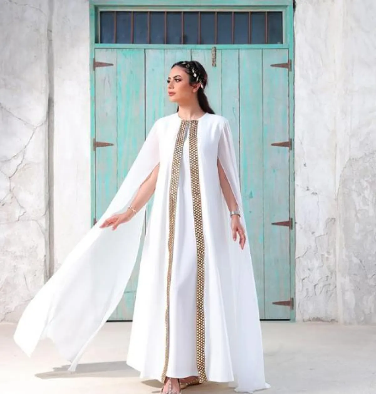 اطلالة مسائية فاخرة اعتمدتها ديما الأسدي في القفطان: