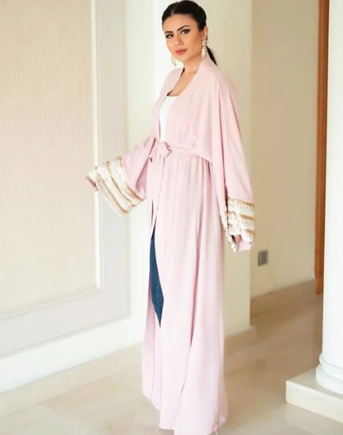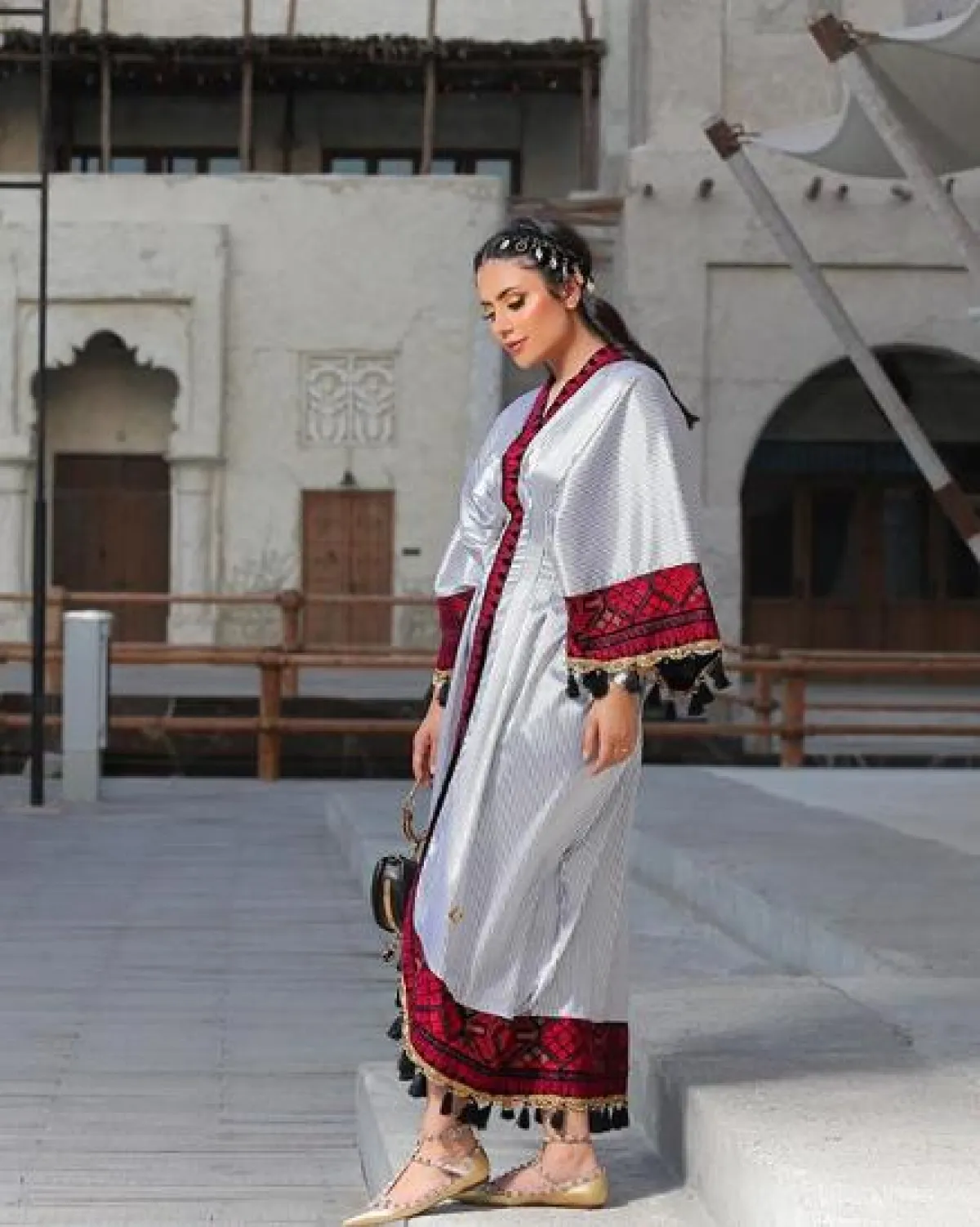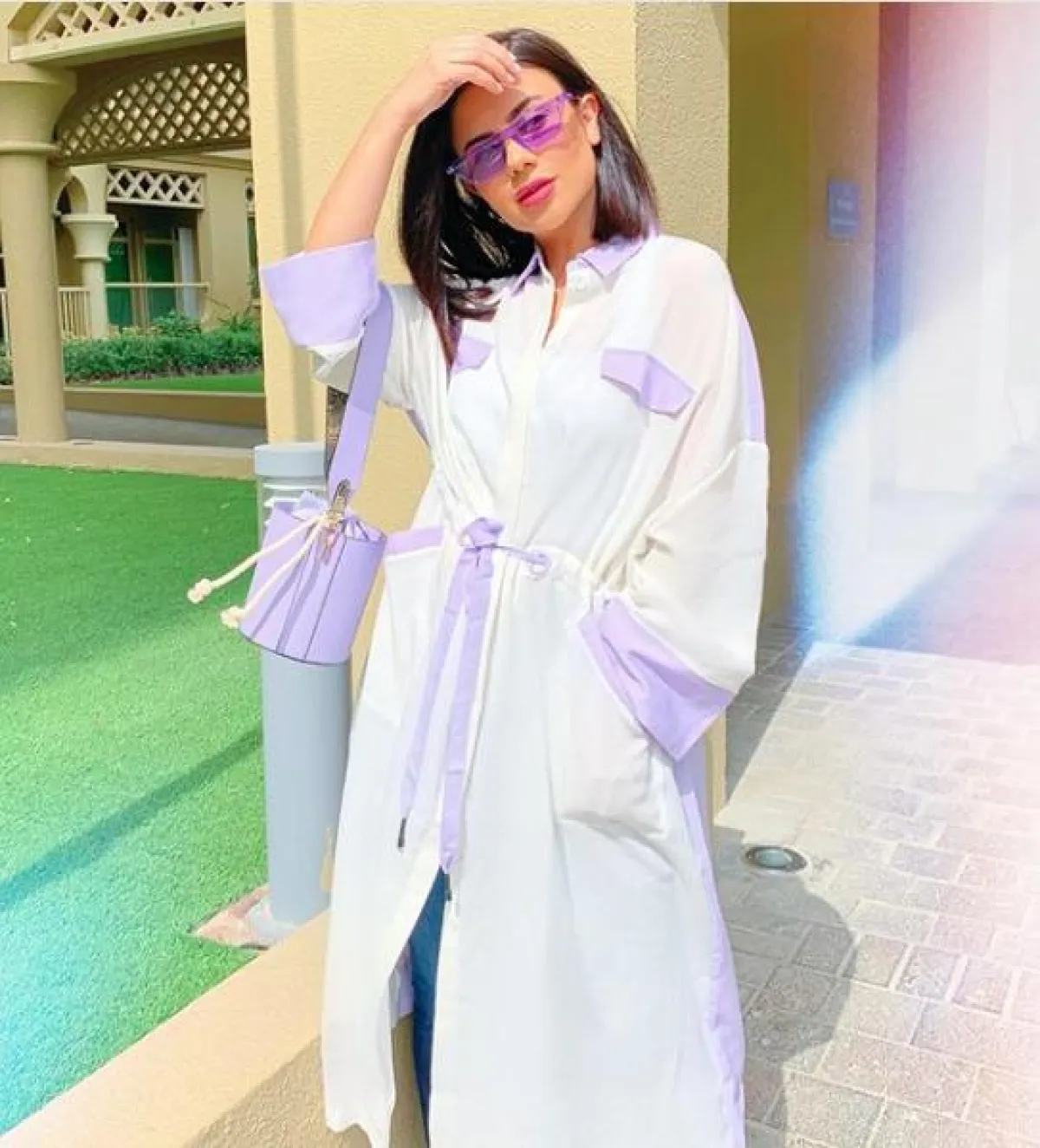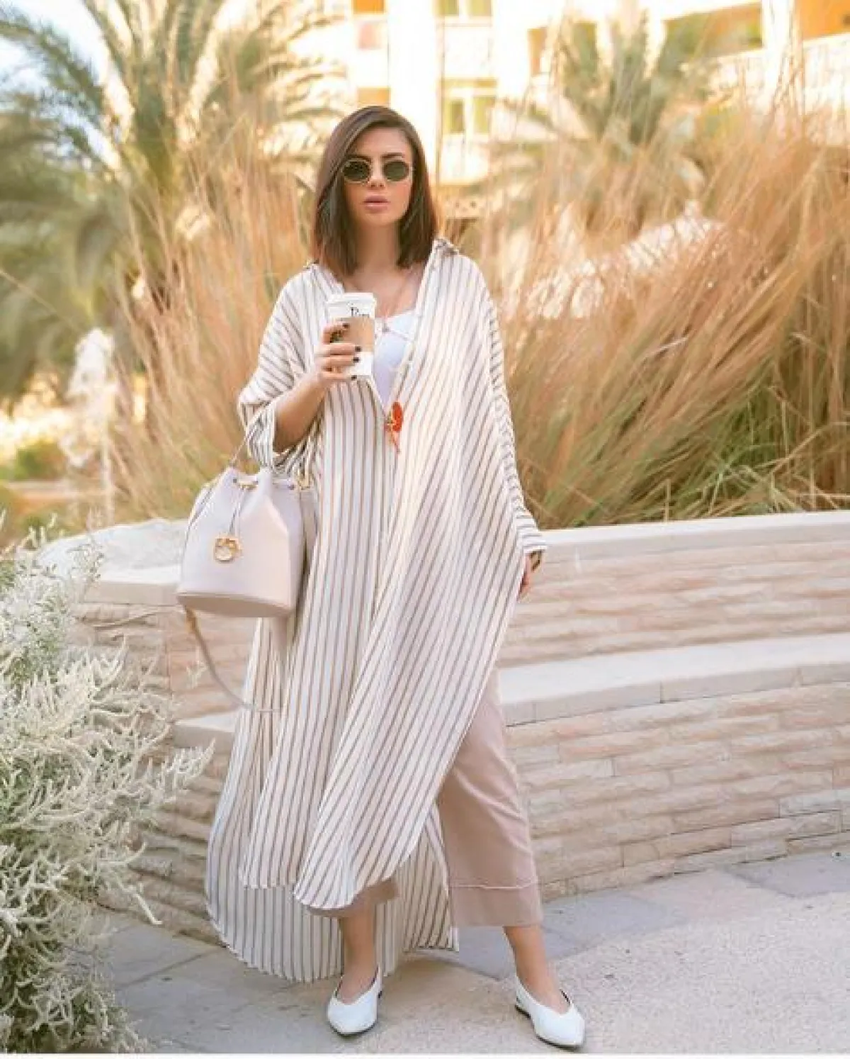 اطلالات صباحية كاجوال لكن أنيقة، حملت طابعًا شرقيًّا اعتمدتها ديما الاسدي، حيث اختارت جلابية طويلة باللونين البيج والأبيض، وقد نسقت معها بنطلونًا عريضًا باللون البيج مع توب من تحتها باللون الأبيض، وأكملت اللوك بشنطة يد بتصميم عصري ،وحذاء من الجلد من دون كعب، ونظارات شمسية بعدسات مستديرة.