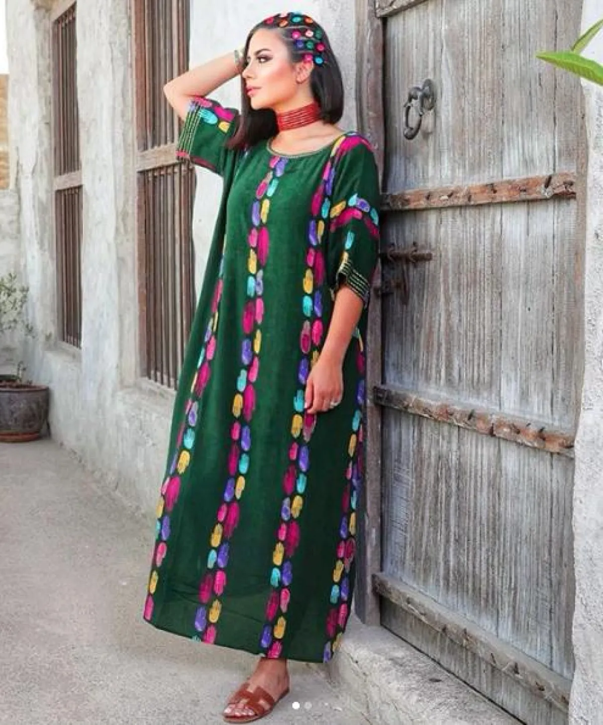 جلابية ملونة اختارتها ديما الأسدي لأحد المشاوير: