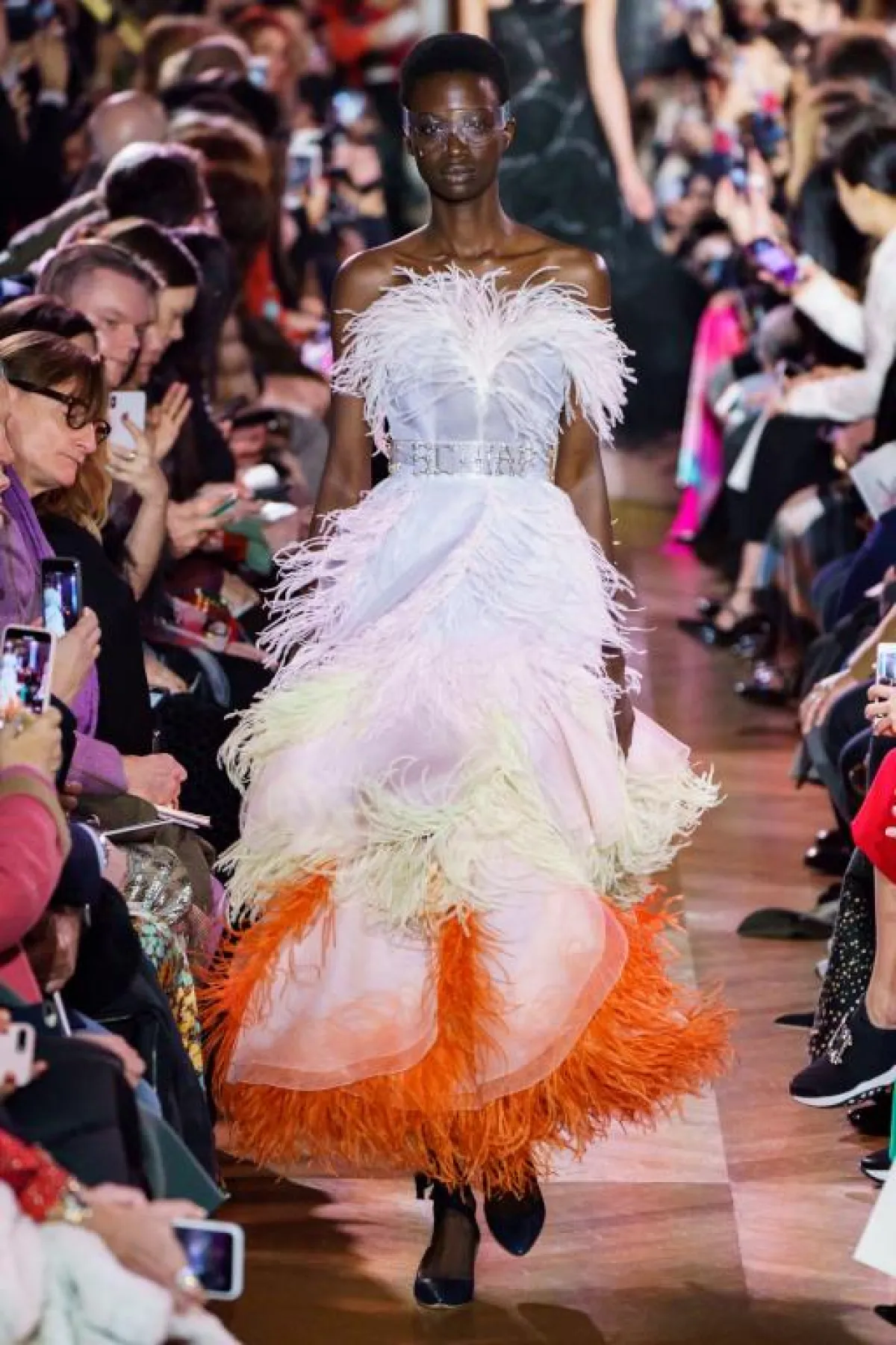 فستان مزين بالريش من schiaparelli