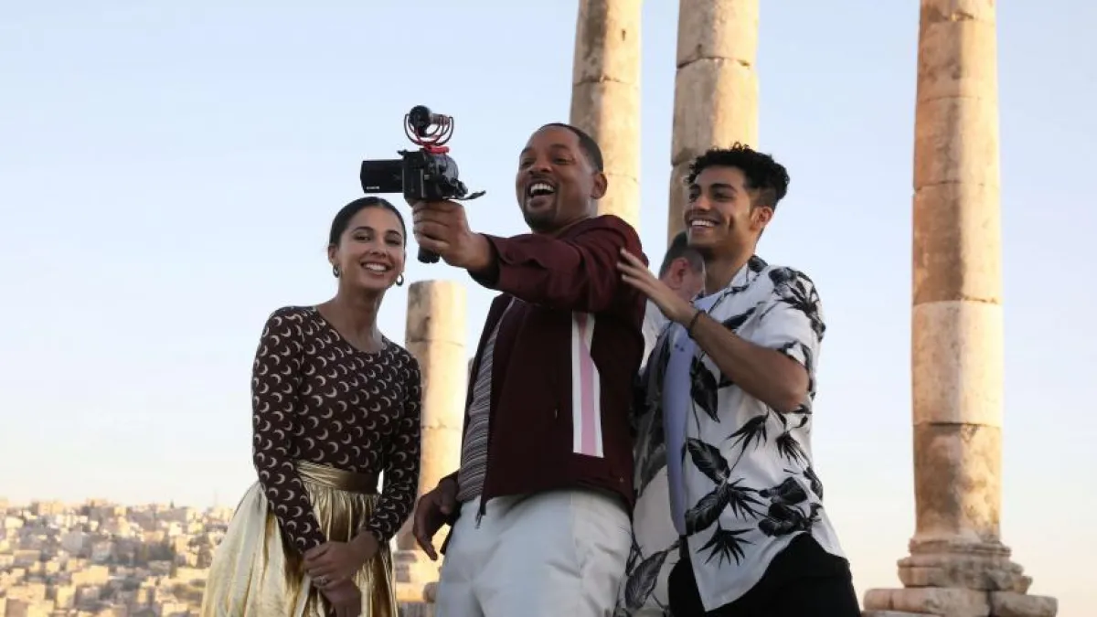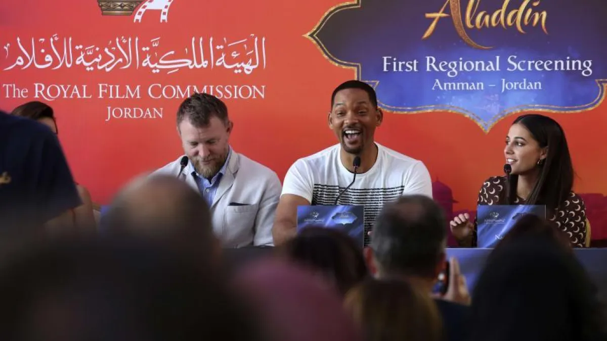 وفي حديثه للإعلاميين في مؤتمر صحفي بمقر الهيئة الملكية الأردنية للأفلام أمس الإثنين وأدارته الإعلامية ريا أبي راشد، قال ويل سميث: كان من المهم بالنسبة لي وللمخرج غاي ريتشي سرد قصة بمثابة «رسالة حب» إلى المنطقة. سررت بلعب دور الجني؛ فالجني تعريف للحب غير المشروط، ويعكس ما أريد أن أكون في الحياة، أن أعطي وأتأكد بالتالي من عدم إساءة استعمال هذا العطاء. في «علاء الدين»، تحتم عليّ توظيف كل المواهب التي صقلتها على مدى ثلاثين عامًا. وكان تصوير هذا الفيلم من أفضل التجارب في حياتي المهنية. وفي وقت سابق من اليوم نفسه، أقيم عرض خاص لأطفال من مركز الحسين للسرطان.