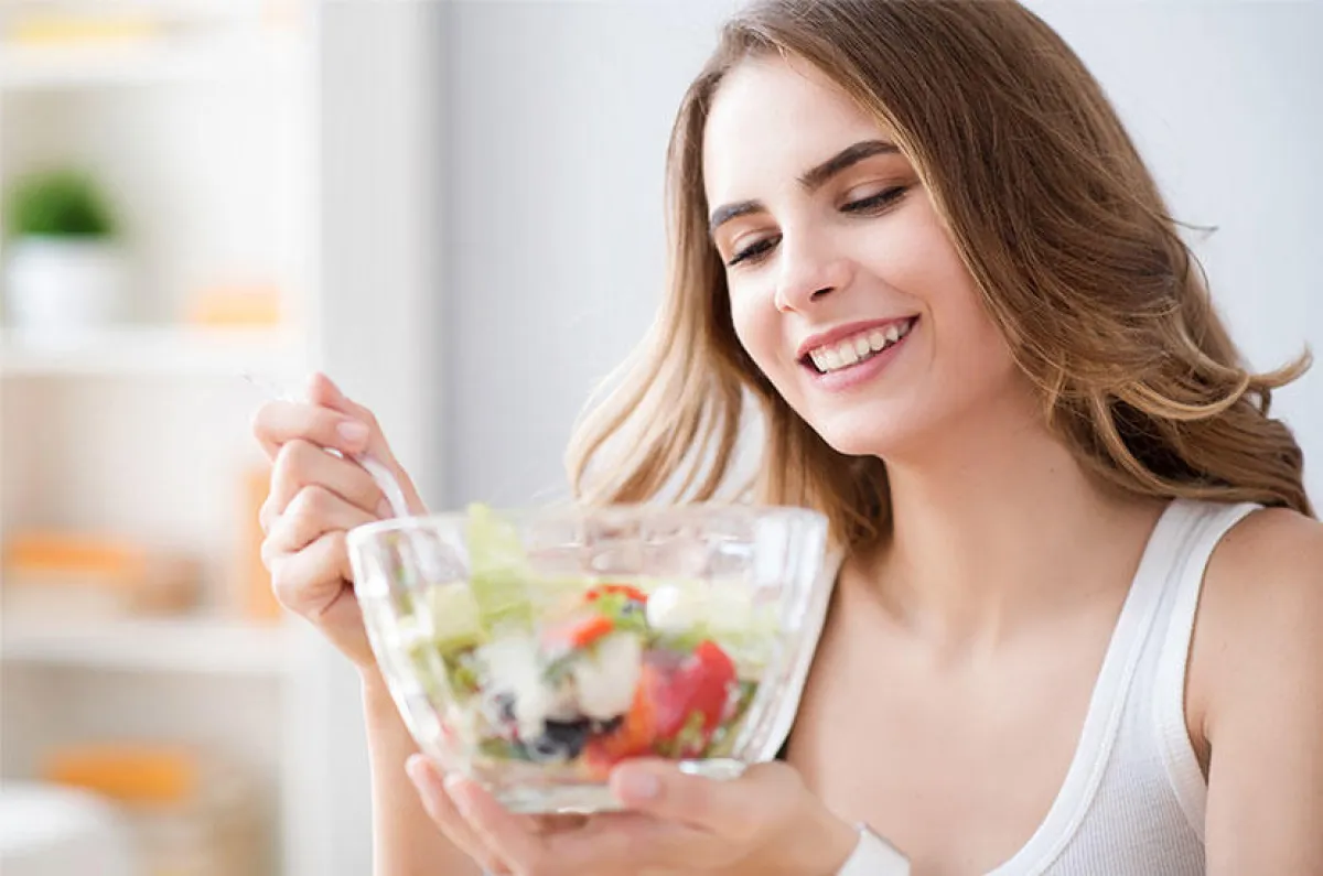 - ركزي على وجبة السحور، بشرب الماء، والتركيز على الخضروات والفاكهة، التي تحتوي على نسبة عالية من المياه والفيتامينات، التي تمدّكِ ببشرة صحية ونضرة.