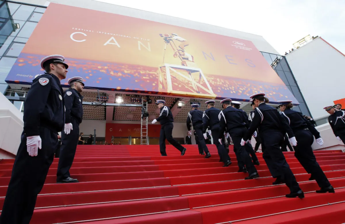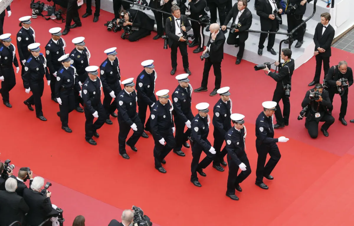 وشهدت السجادة الحمراء لمهرجان كان عرضاً للشرطة الفرنسية قبل بدء استقبال ضيوف المهرجان.