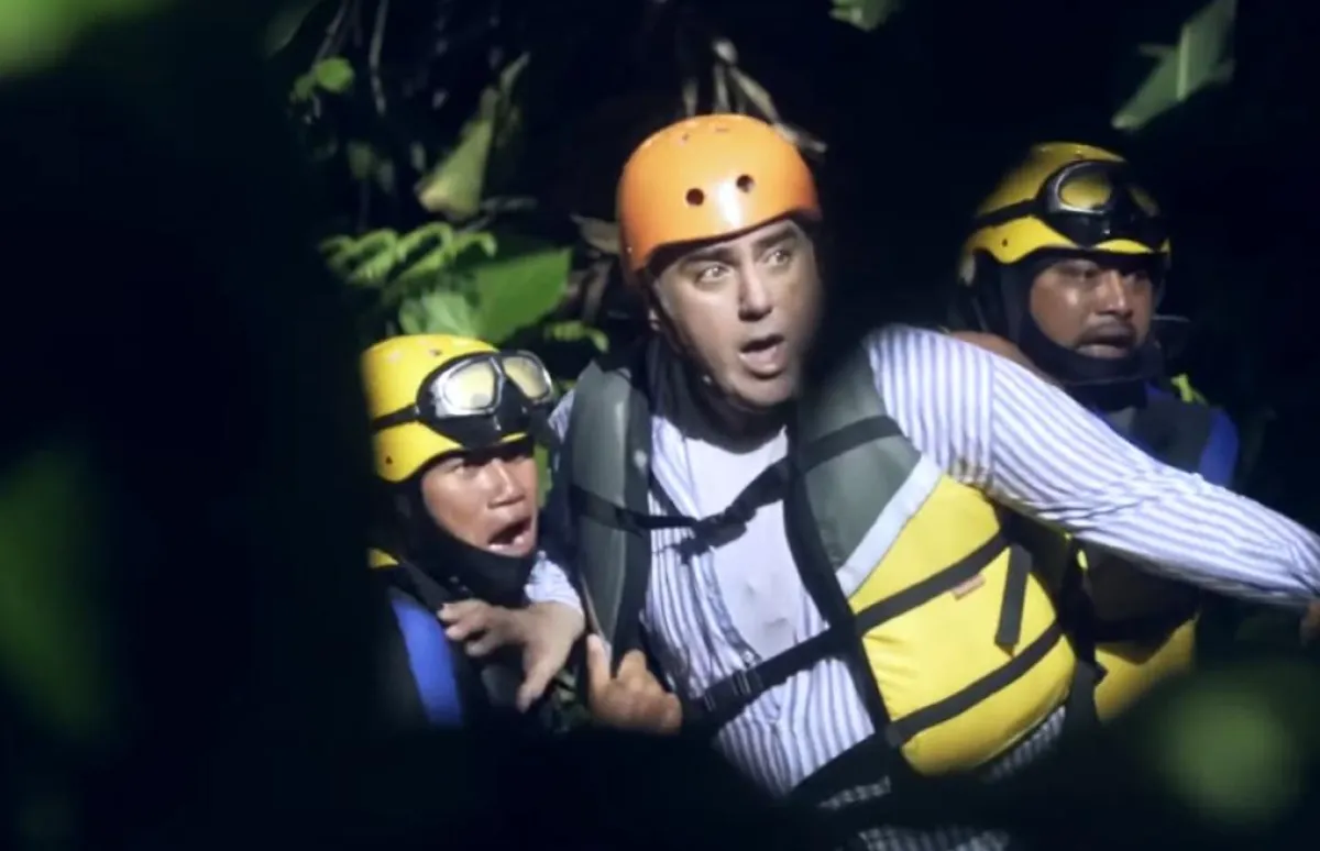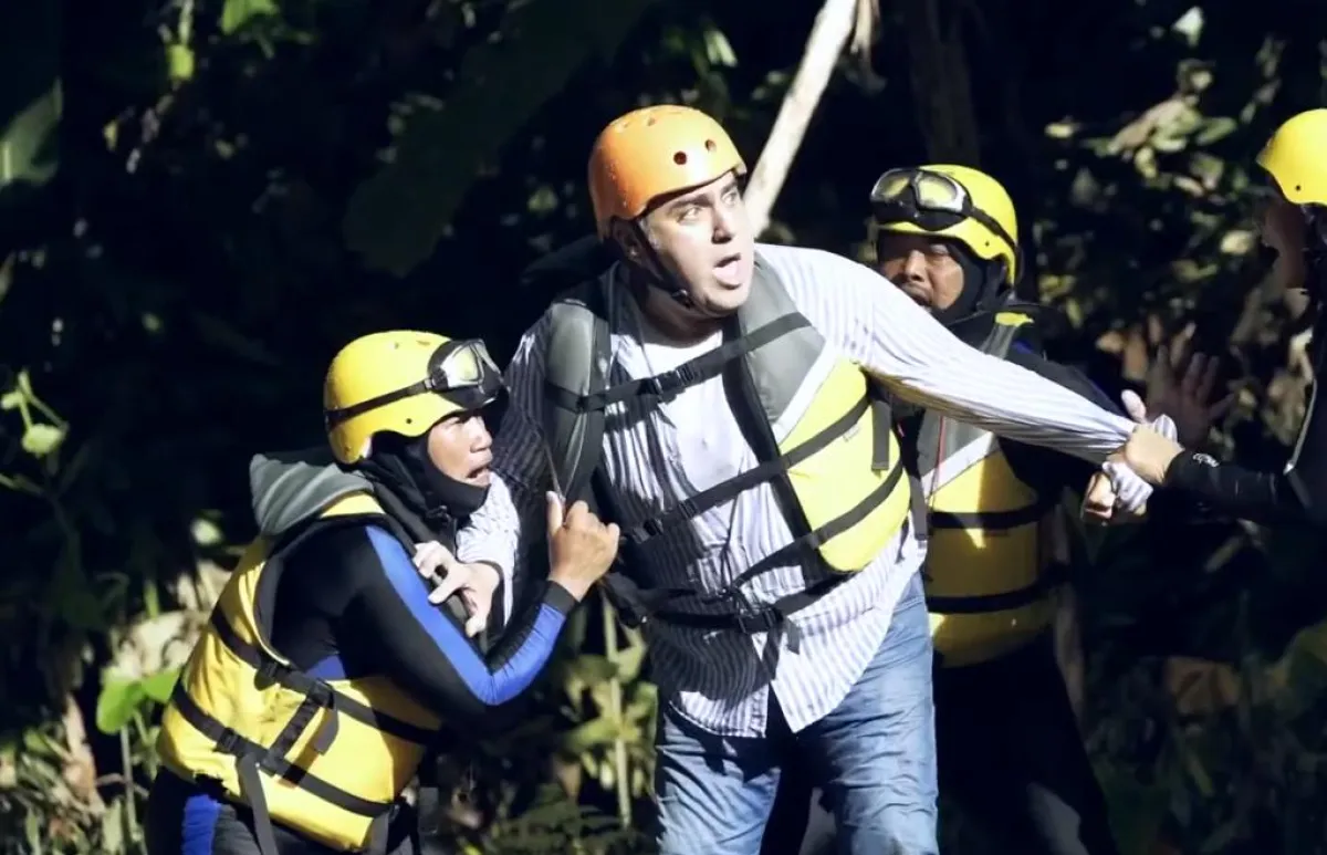 تعرض حبيب، للسقوط من أعلى الكوبري وسط صيحات من الصراخ والخوف من الأخير ضمن الفقرة الثانية الوهمية بقيام الضيف بإعلان وهمى ضمن مقلب رامز فى الشلال، وظل يردد حبيب الشهادة لا الله الا الله بعد سقوطه في المياه وإقتياده لمركب إنقاذ.