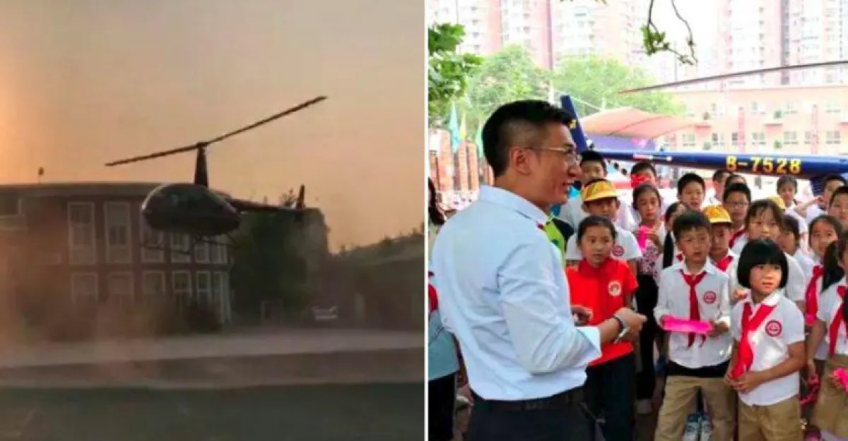 دخل أب في بكين مدخلًا دراماتيكيًا، عندما وصل إلى مدرسة ابنته على متن مروحية هليكوبتر. وبحسب موقع «نيكست شارك» يُمكن رؤية الأب «تشن» في الفيديو، وهو يهبط على ساحة المدرسة، بينما يصوّر بعض المارة اللحظة النادرة.