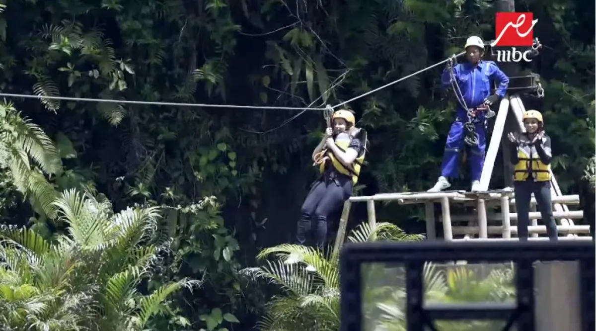 أغلب حوار ريا في الحلقة كان باللغة الإنكليزية تأثرا بإقامتها شبه الدائمة في هوليود، وتم اختراع مقلب خاص لها وهو عبور مانع المياه عبر التلفريك، ورغم تمتعها بلياقة بدنية واضحة في الجزء الأول من التدريبات الترفيهية، إلا إنها أصيبت بحالة من الرعب الشديد، عقب فشلها في اجتياز المانع المائي، وظلت تبكي حتى تدخلت مهيرة عبد العزيز لمواساتها.