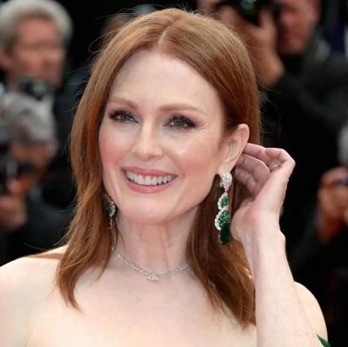لعشاق الزمرّد نصيب من مهرجان كان حيث تألّقت الممثّلة الصهباء جوليان مور Julianne Moore صديقة علامة شوبارد Chopard، بخاتم وزوج من الأقراط الساحرة المرصّعة بالماس وأحجار الزمرد من مجموعة Red Carpet.