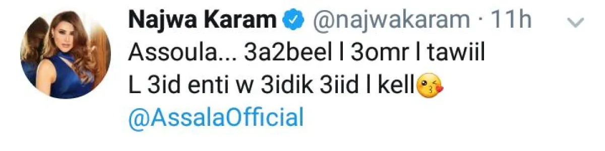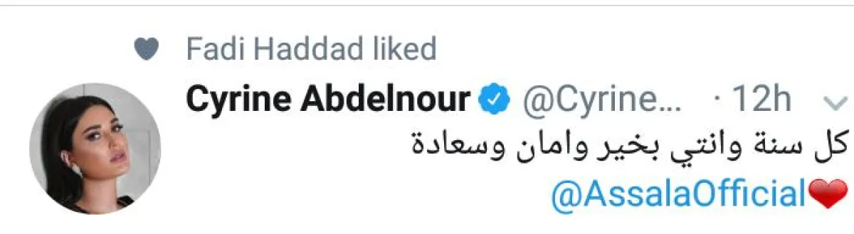 وغرّد عدد من الفنانين لها، بهذه المناسبة وتمنوا لها التوفيق والصحة والنجاح من بينهم بلقيس وسيرين عبد النور وصابر الرباعي ونجوى كرم ومحمود خيامي .