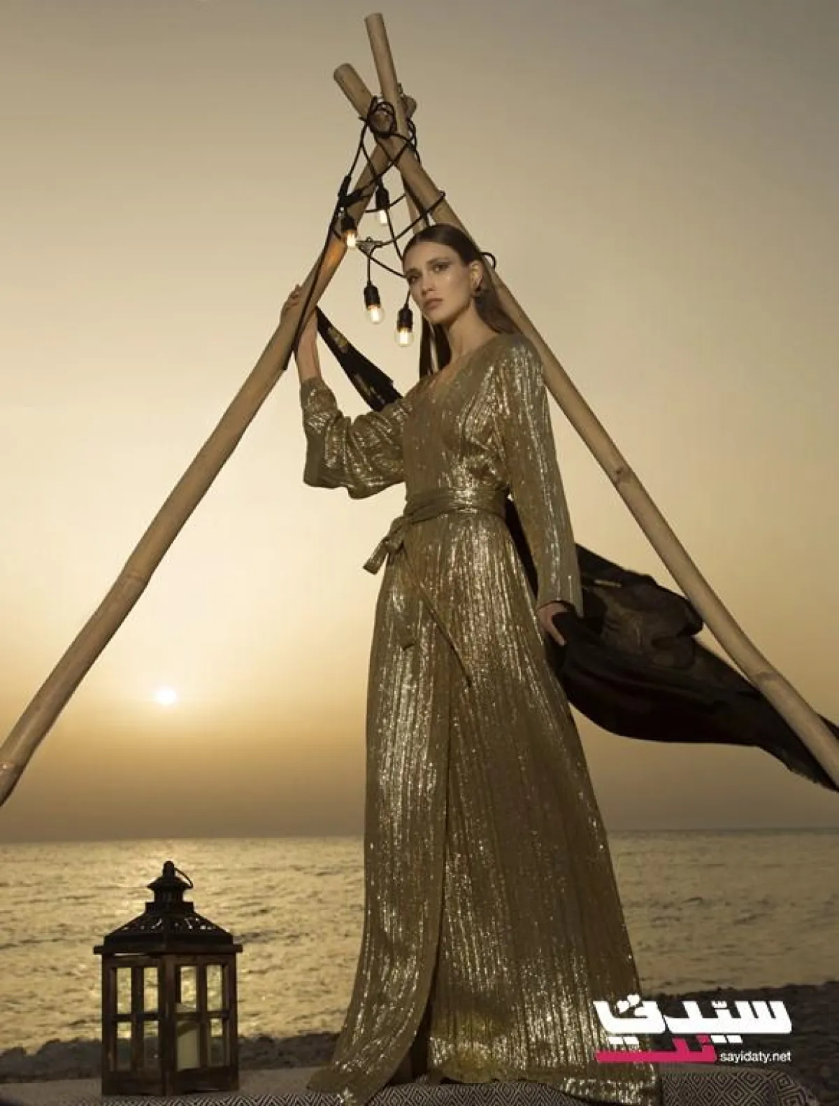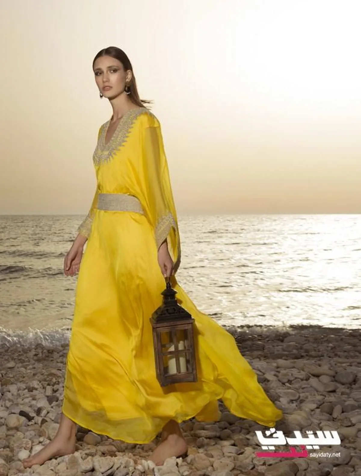 جلابية مطرّزة باللون الذهبي. السعر 500$