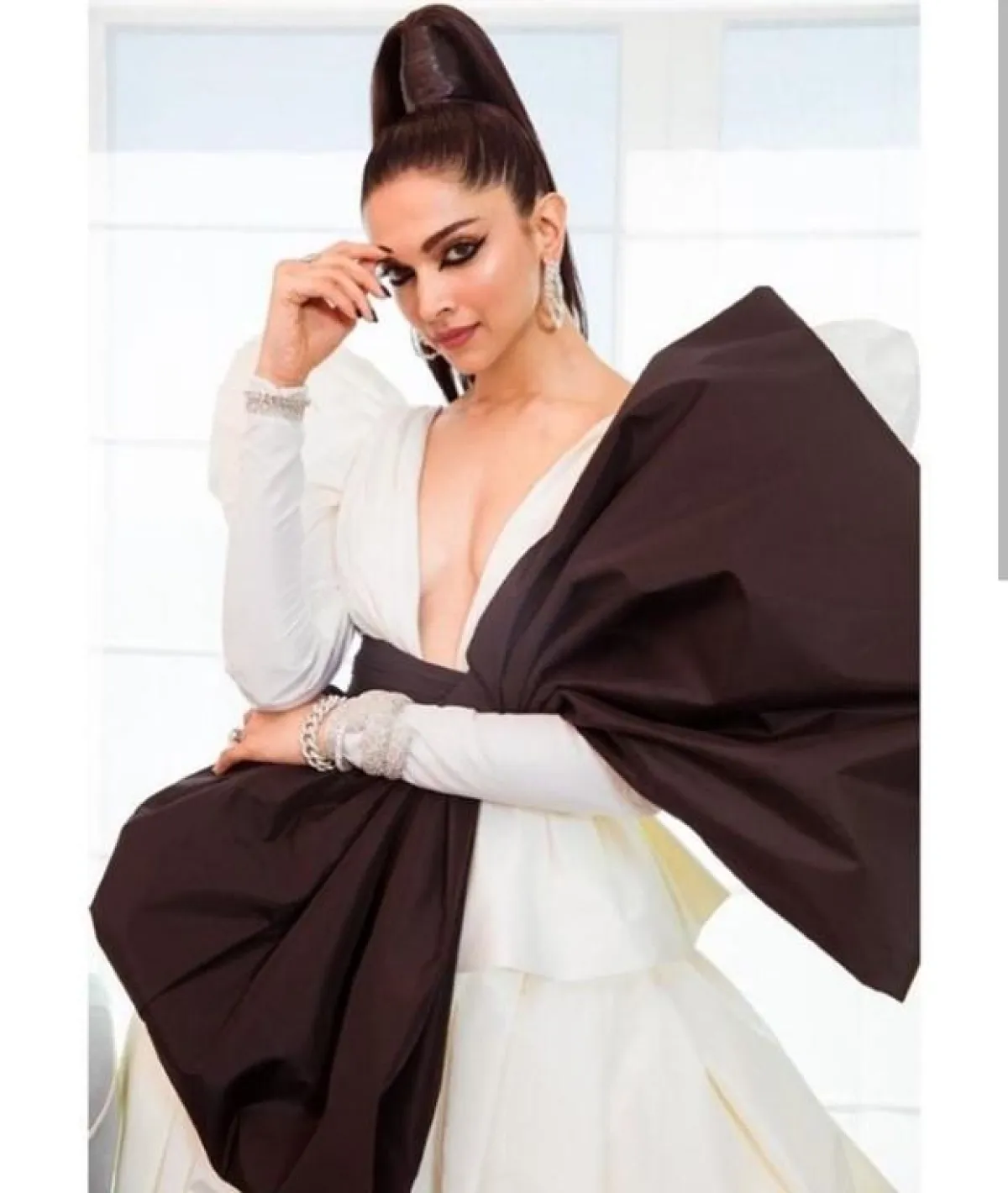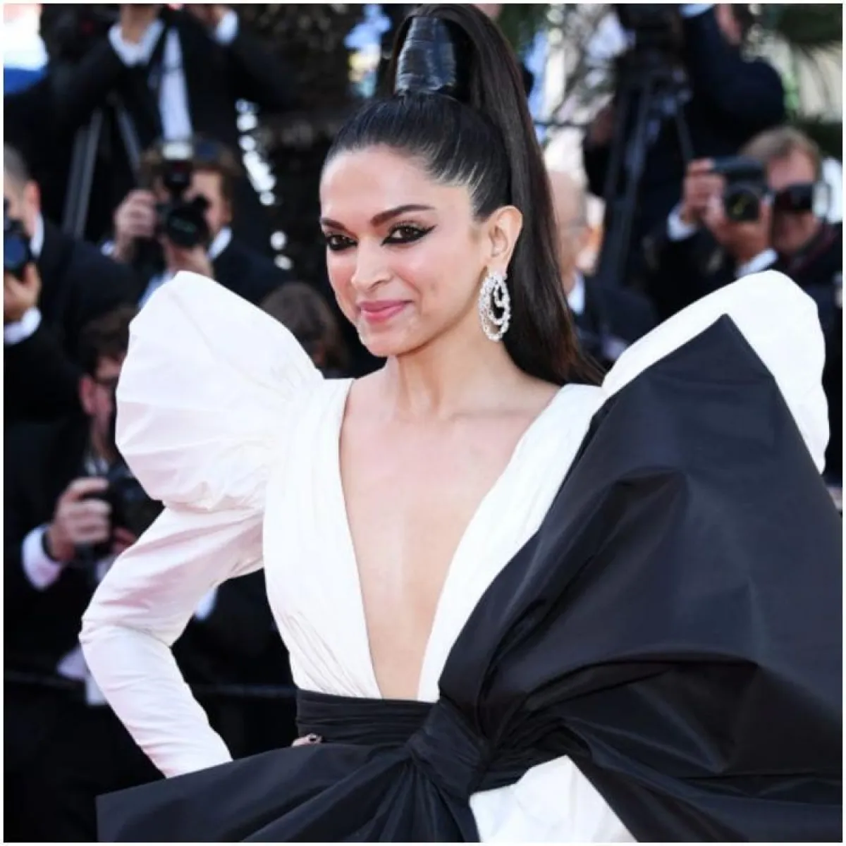 أما النجمة ديبيكا بادوكون فهي الأكثر سحرًا في مهرجان كان هذا العام، حيث ظهرت بثوب Dundas كوتوير العالمي، وقد لفتت الأنظار إليها بسبب تصميم فستانها الذي مزج بين اللونين الأسود والأبيض، لكن اللافت فيه، كان عقدة الفراشة الكبيرة، واختارت تسريحة شعر مرفوعة نستقتها لتتلاءم مع التصميم الذي كشف صدرها.