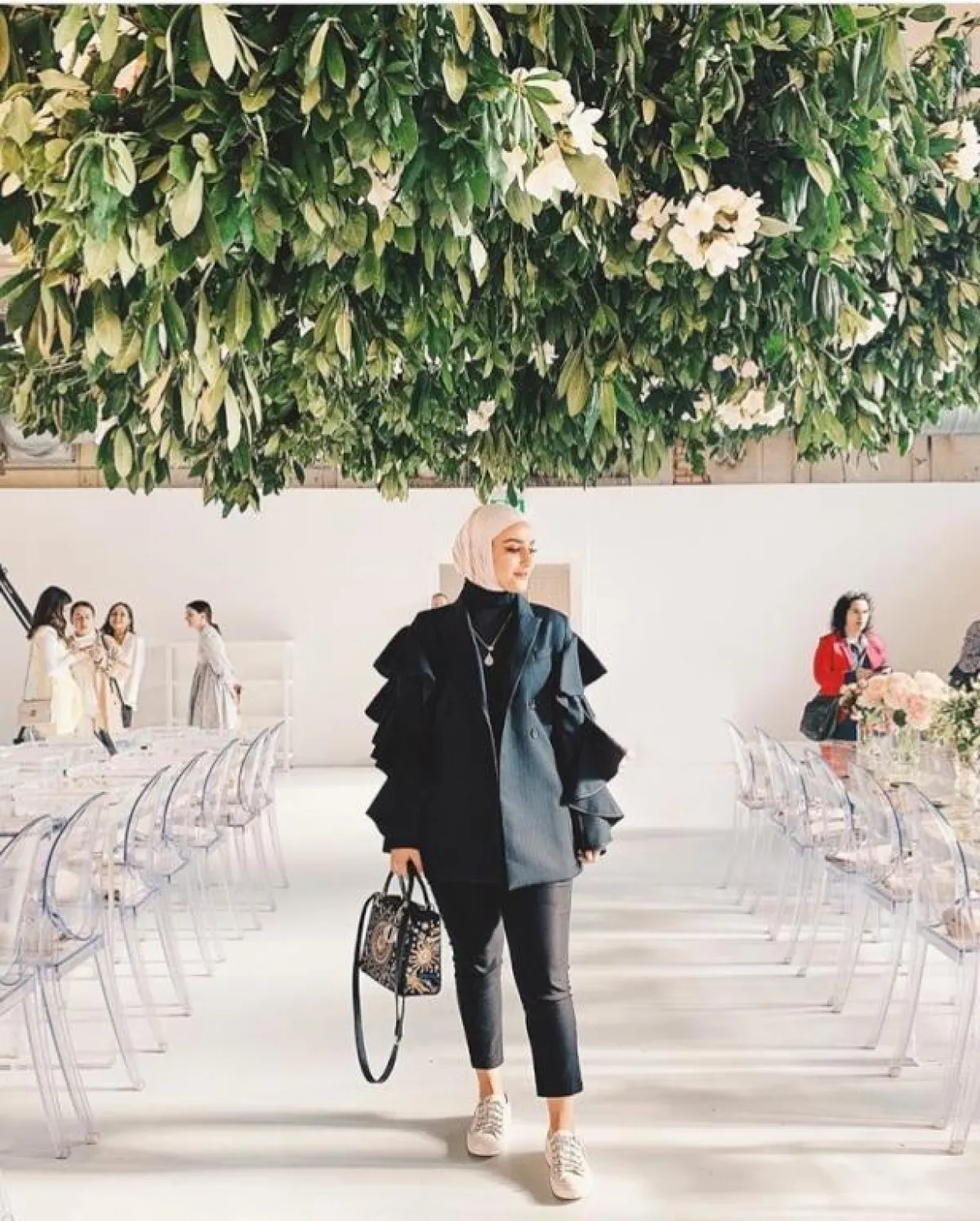 من منا لا تحب الاطلالات التي لن تأخذ الكثير من وقتها! البليزر يُعتبر أحد هذه القطع العملية المناسبة لكل الأوقات، سواء كاجوال أو كلاسيك، يمكنكِ تنسيقها بطريقة عصرية بالنهار كهذا اللوك من دلال الدوب، مع البنلطون الأسود والسنيكر الرياضي.