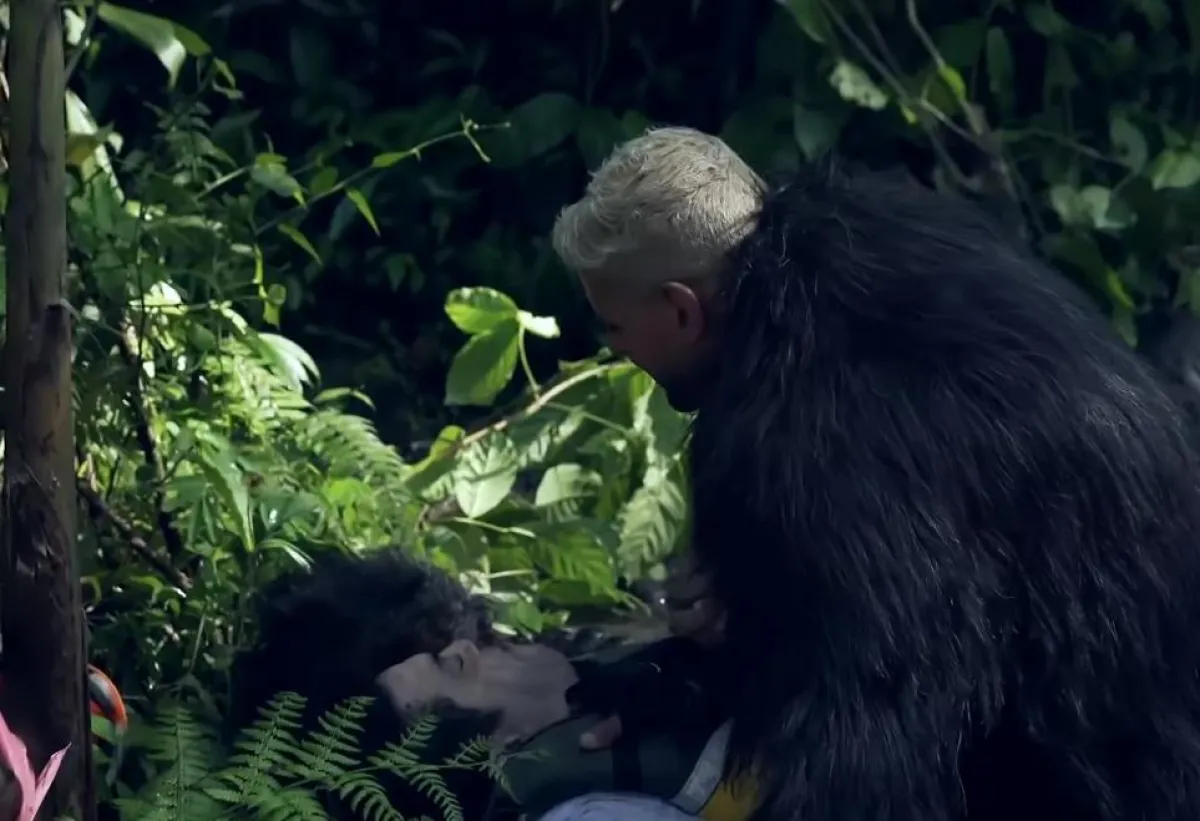 واستنجد الثنائي أبو ليلة وهادي بطاقم برنامج " رامز في الشلال"، بالصراخ: الحوقنا بنغرق يا جدعان، وأصيب أبو ليلة بحالة من الهلع والفزع عند رؤيته غوريلا رامز جلال، وواجه طاهر الغوريلا بطريقة طريفة حيث قطع فرع من شجرة وقام بمطاردة غوريلا رامز جلال بها قائلا: امشي بعيد، بينما ظلت تصرخ الفنانة نور قائلة: هموت.