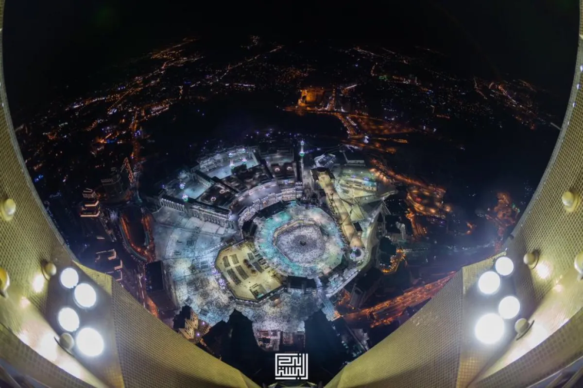 في منظر ساحر للأجواء الروحانية في الحرم المكي الشريف، التقط المصور الفوتوغرافي السعودي محمد البستاني صورة بديعة للحرم المكي من فوق منارة برج الساعة الذي يتخطى ارتفاعه الـ600 متر، موثقًا حركة المصلين والمعتمرين في الليالي الرمضانية.
