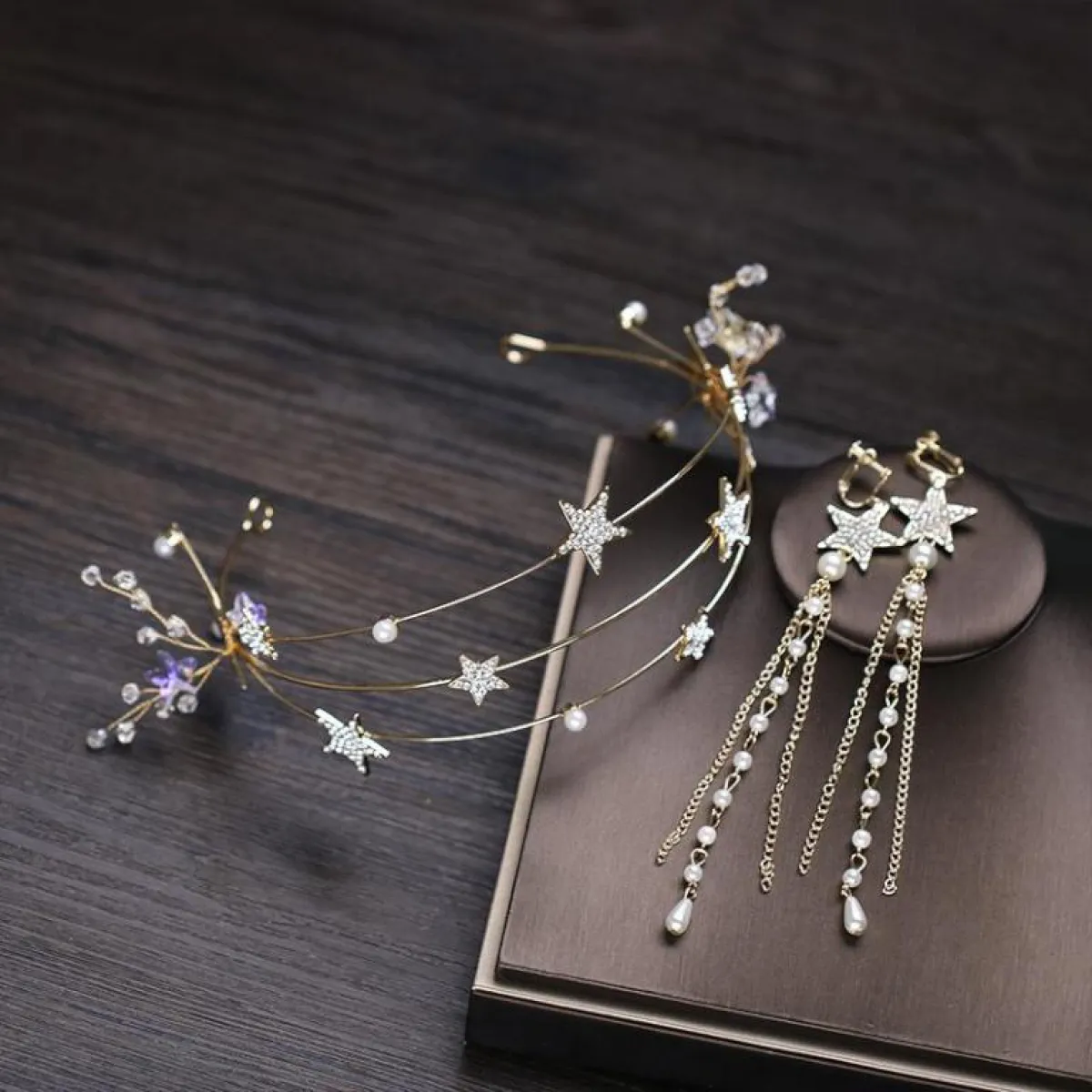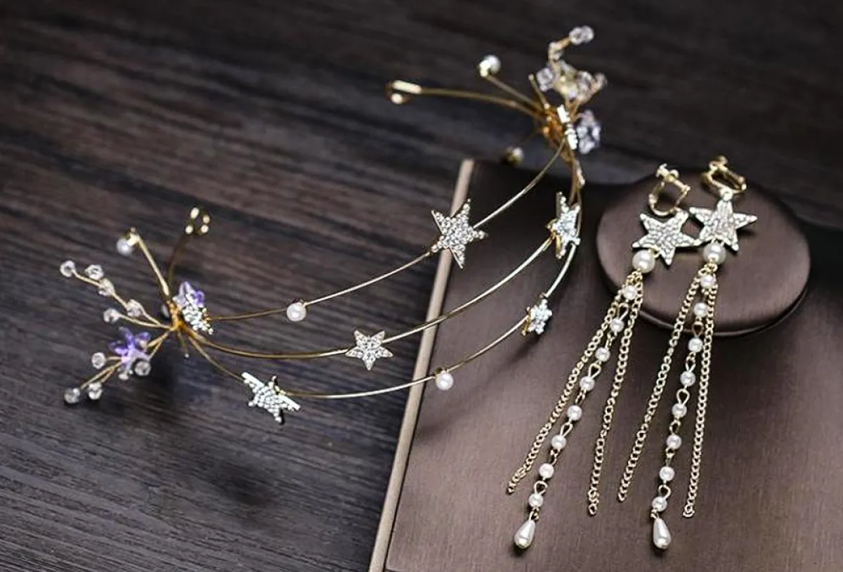 الدبابيس الرفيعة مع تسريحة الشعر المرفوع مع شينيو بسيط، يمكنكِ توزيعها بكل بساطة، ولاطلالة ملكية أكثر، استخدمي هذه الدبابيس على شكل النجوم، ووزعيها بشكل متناغم على شعرِك.