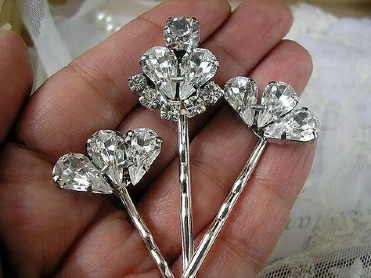 الدبابيس المرصعة بالأحجار على شكل قطرات الماء، من أشهر الأنواع التي تفضلها الصبايا، بخاصة التي تبحث عن اطلالة تشبه الأميرات، ستحتاجين لاعتماد أكثر من واحدة حتى تُبرزي جمالها، لأنه بالعادة تكون هذه الدبابيس صغيرة الحجم، لكنها براقة جدًّا، وننصحكِ باعتمادها مع أقراط أذن تحمل شكل قطرة الماء نفسها، لتصبحي باطلالة فخمة ومتكاملة.