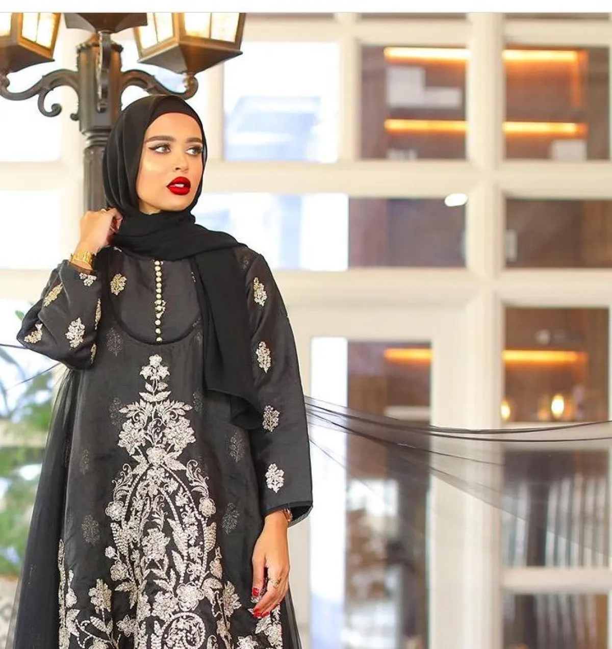 في الشهر الكريم هناك الكثير من الحفلات الزاخرة بأجواء البهجة، والتي يناسبها اعتماد عبايات ملونة ومطرزة تعكس ذوقكِ الرائع، كالعباية السوداء التي اعتمدتها مرمر محمد، مطرزة باللون الفضي برسومات الورود البارزة، مع لمسة من التول المنفوشة.