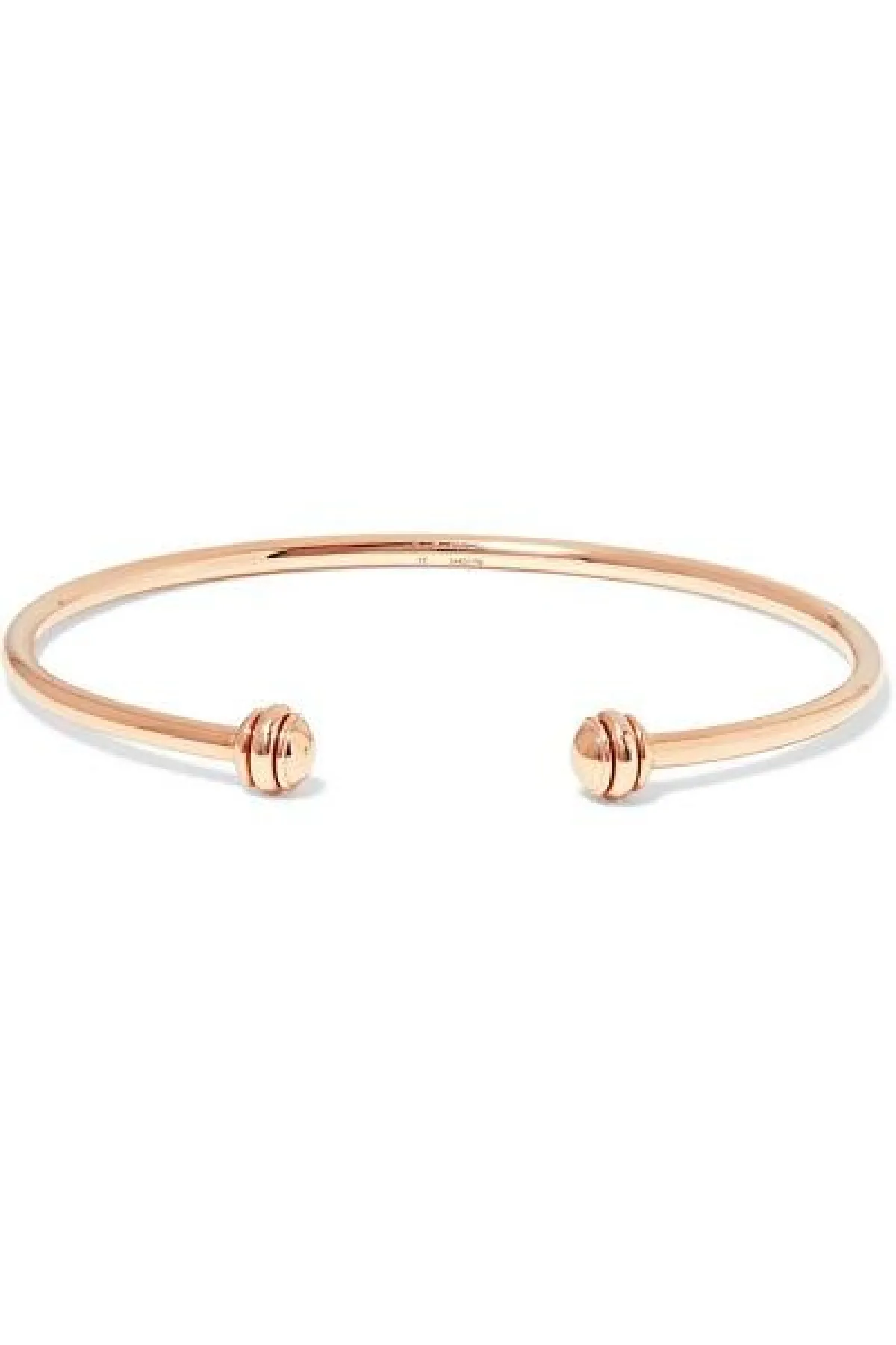 اخترنا لك من دار بياجيه Piaget سواراً عصرياً من الذهب الوردي الخالص عيار 18 قيراطاً من مجموعة Possession. هذا السوار ذو تصميم مفتوح، مرصّع بالماس وحجرين من العقيق الأحمر.