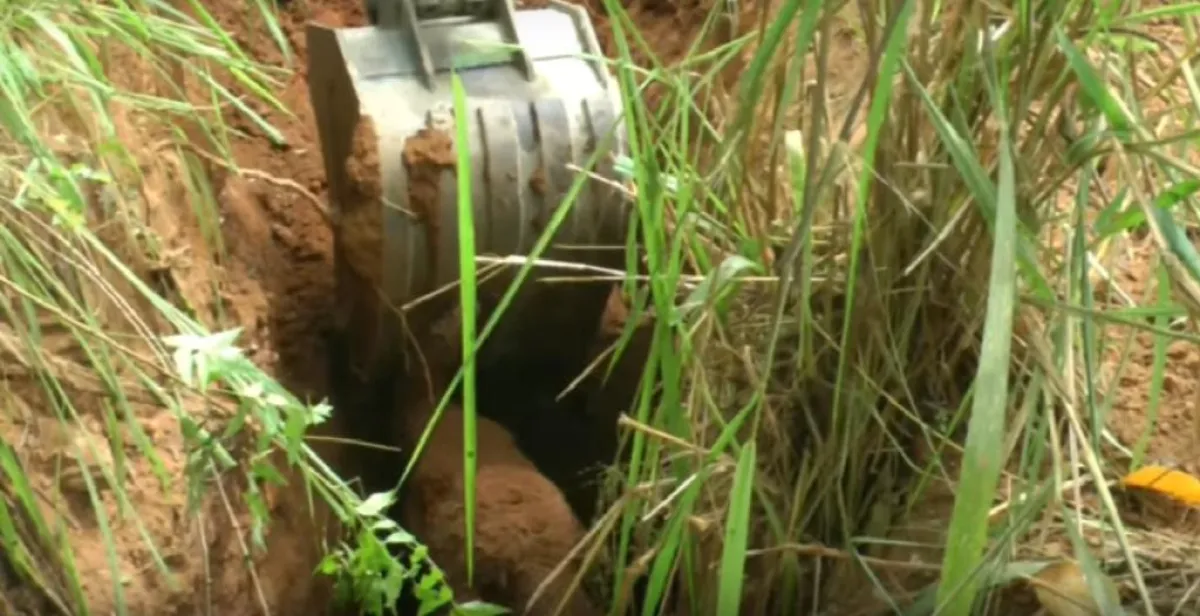 خلال اتصالهم بالسلطات المعنية، أوضح سكان القرية أنها تفعل ذلك بعد سقوط صغيرها في الحفرة، وما كان من المسؤولين هناك إلى أن سارعوا لإرسال حفّارٍ مع آليته حتى ينقذ الصغير. وحتى يتمكن من فعل ذلك، قام بحذر شديد بحفر ممرٍ في الحفرة، يستطيع الصغير أن يتسلقه ويسير من خلاله إلى خارجها. وهذا ما حدث بالفعل.