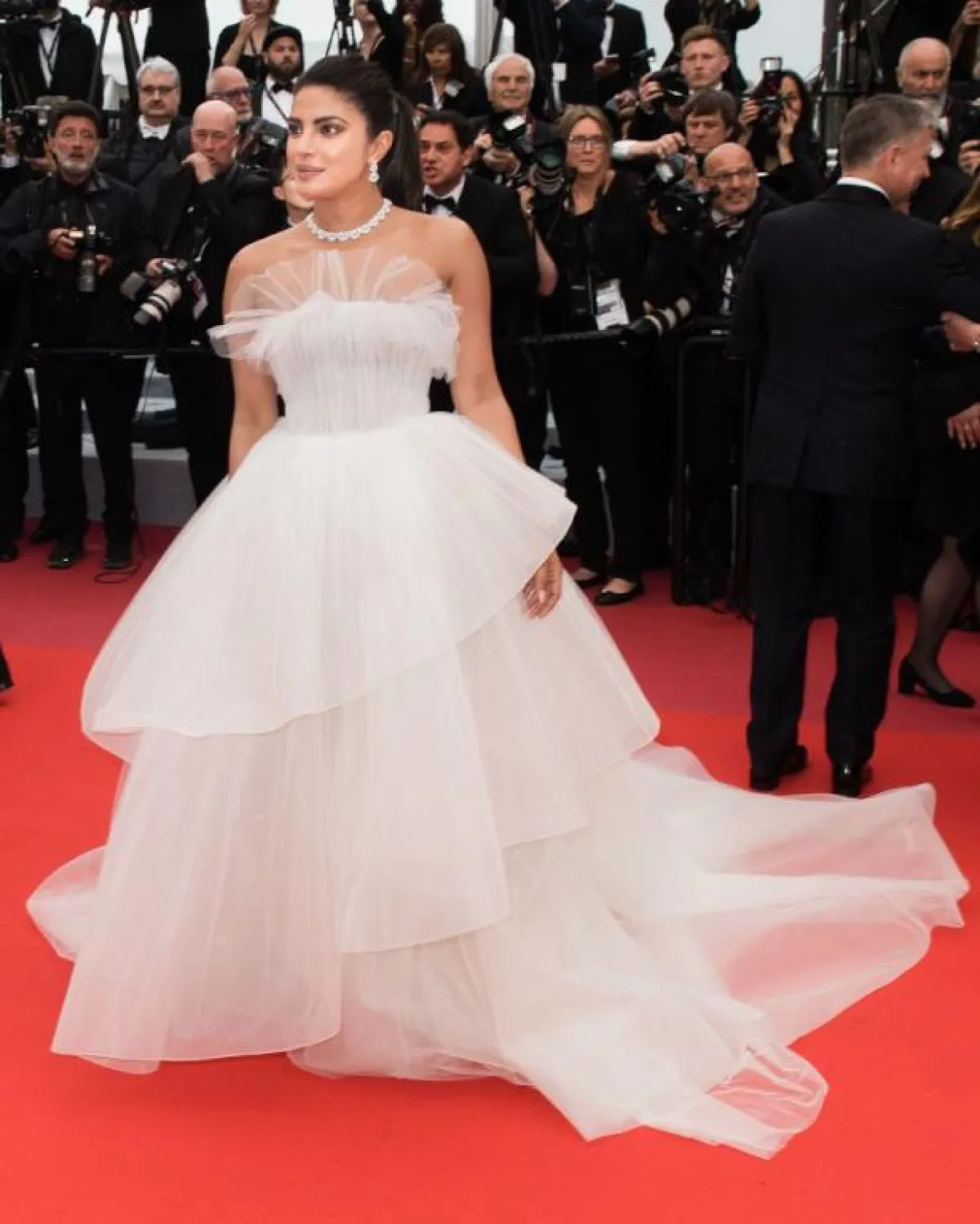 نجمة بوليوود “أيشواريا راي” Aishwarya Rai اختارت اطلالة لافتة ومبتكرة مساء أمس في مهرجان كان، وكانت عبارة عن فستان باللون الأبيض مزين بطبقات من الريش مع كايب من الريش أيضًا من دار “آشي استوديو” Ashi Studio، وقد نسقت مع اللوك صندلًا بكعب عالٍ وأقراطًا ماسية ناعمة.