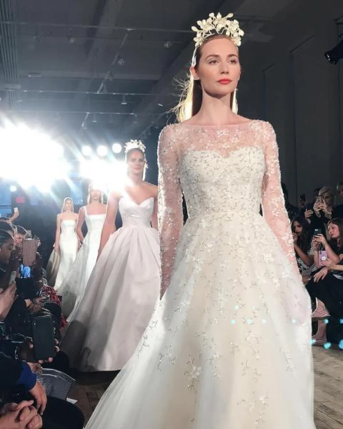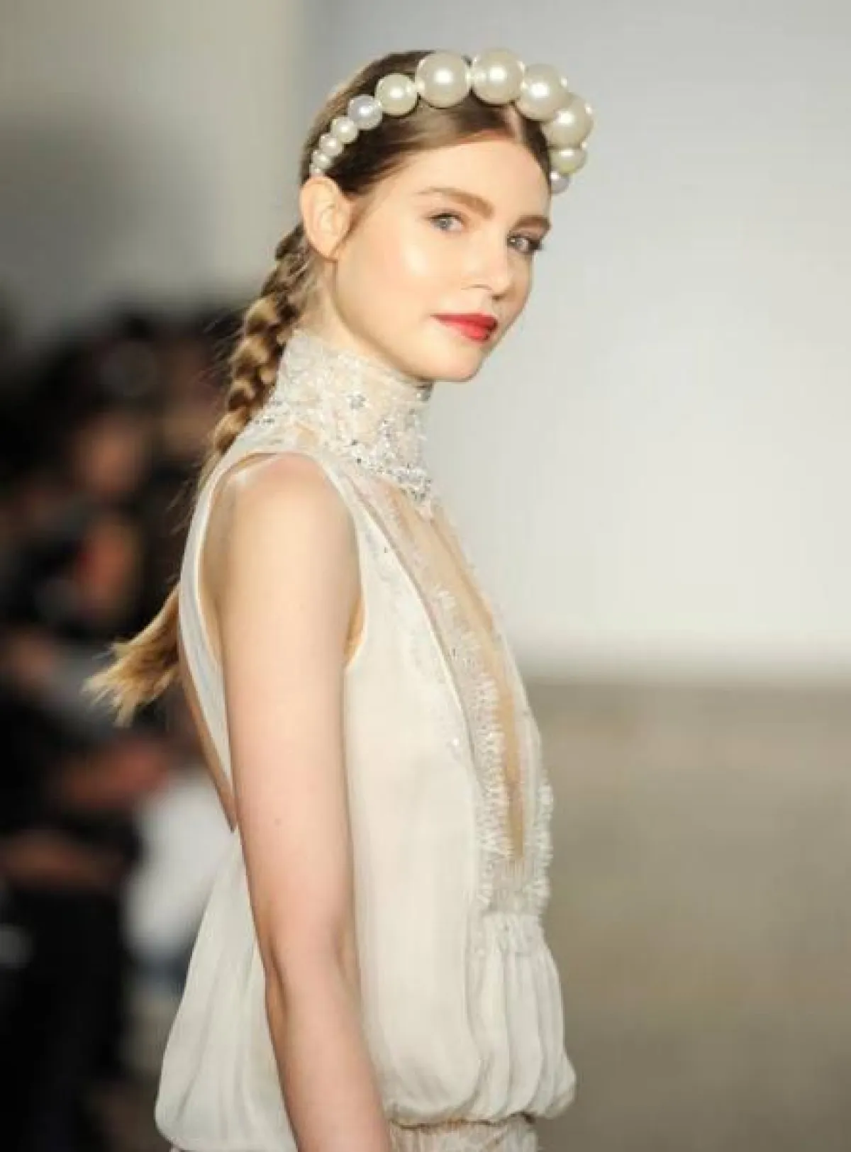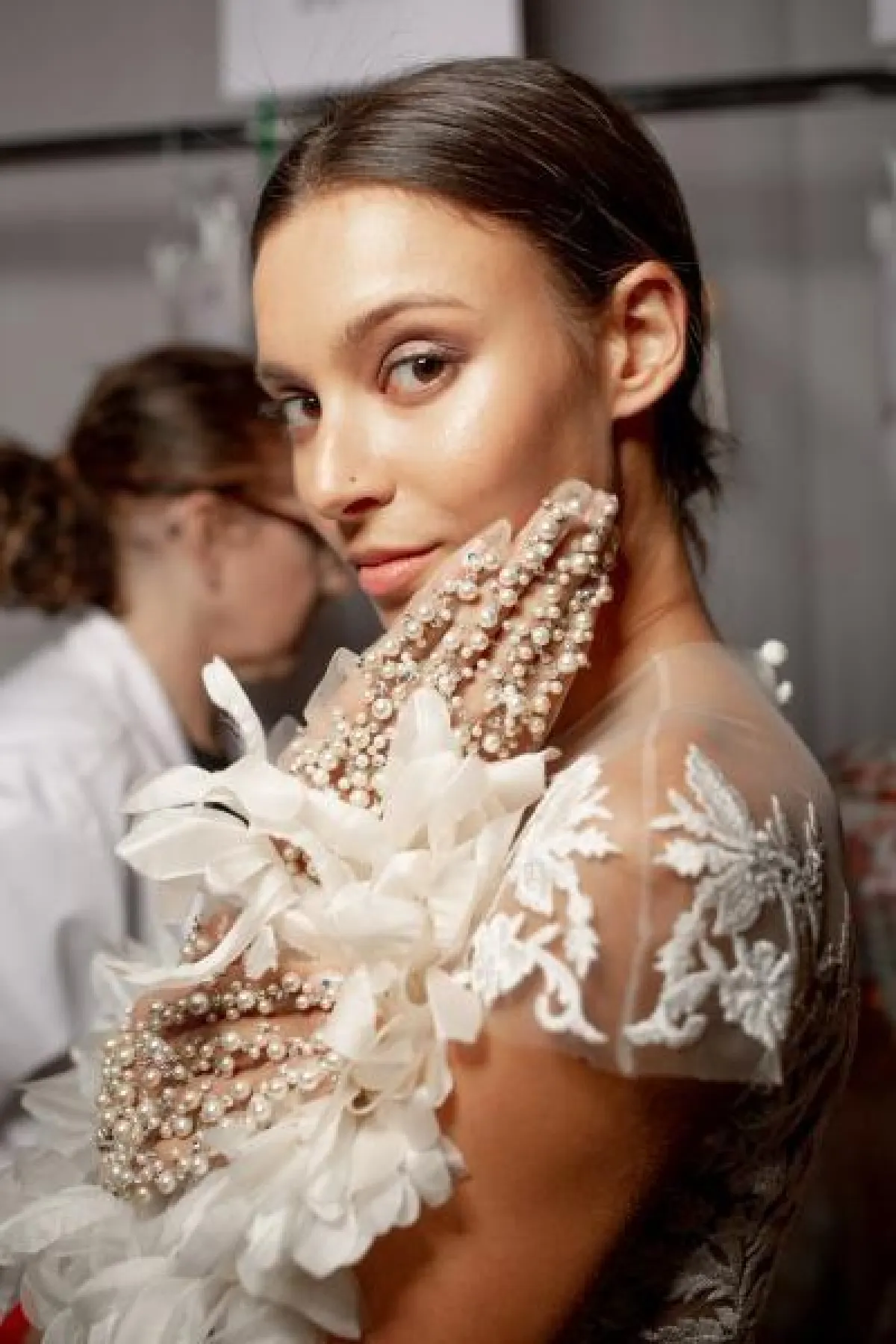 وزين اللؤلؤ إطلالات العروس لموسم خريف 2019، فظهر في أطواق الرأس بحجم كبير لدى ماركة انبال درور Inbal Dror، وظهر أيضاً في القفازات الخاصة بالعروس بعرض فساتين زفاف ريم عكرا Reem Acra.