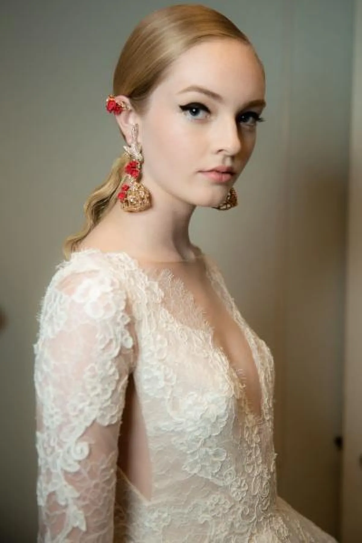 كما إرتدت العرائس أقراط صغيرة برّاقة مثل عروس تاداشي شوجي Tadashi Shoji، وبيرتا Berta.