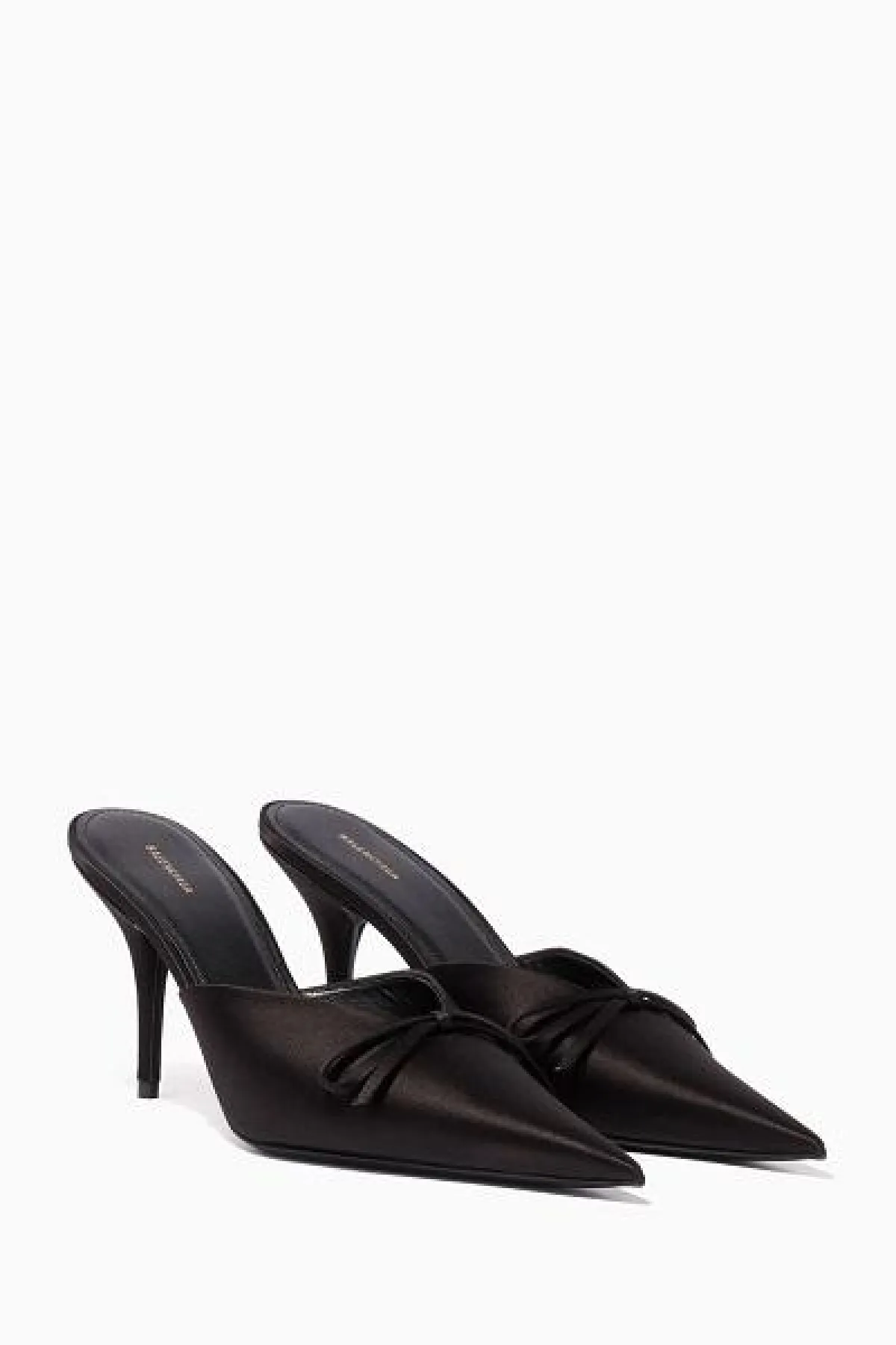 - من أهم إكسسوارات العيد اعتماد هذا الحذاء المميز من بالنسياغا Balenciaga، وهو مفتوح من الخلف، مصمم من قماش الساتان الأسود، ويتميز بمقدمة حادة تعرف بها العلامة، بالإضافة إلى كعبه العالي والرفيع.