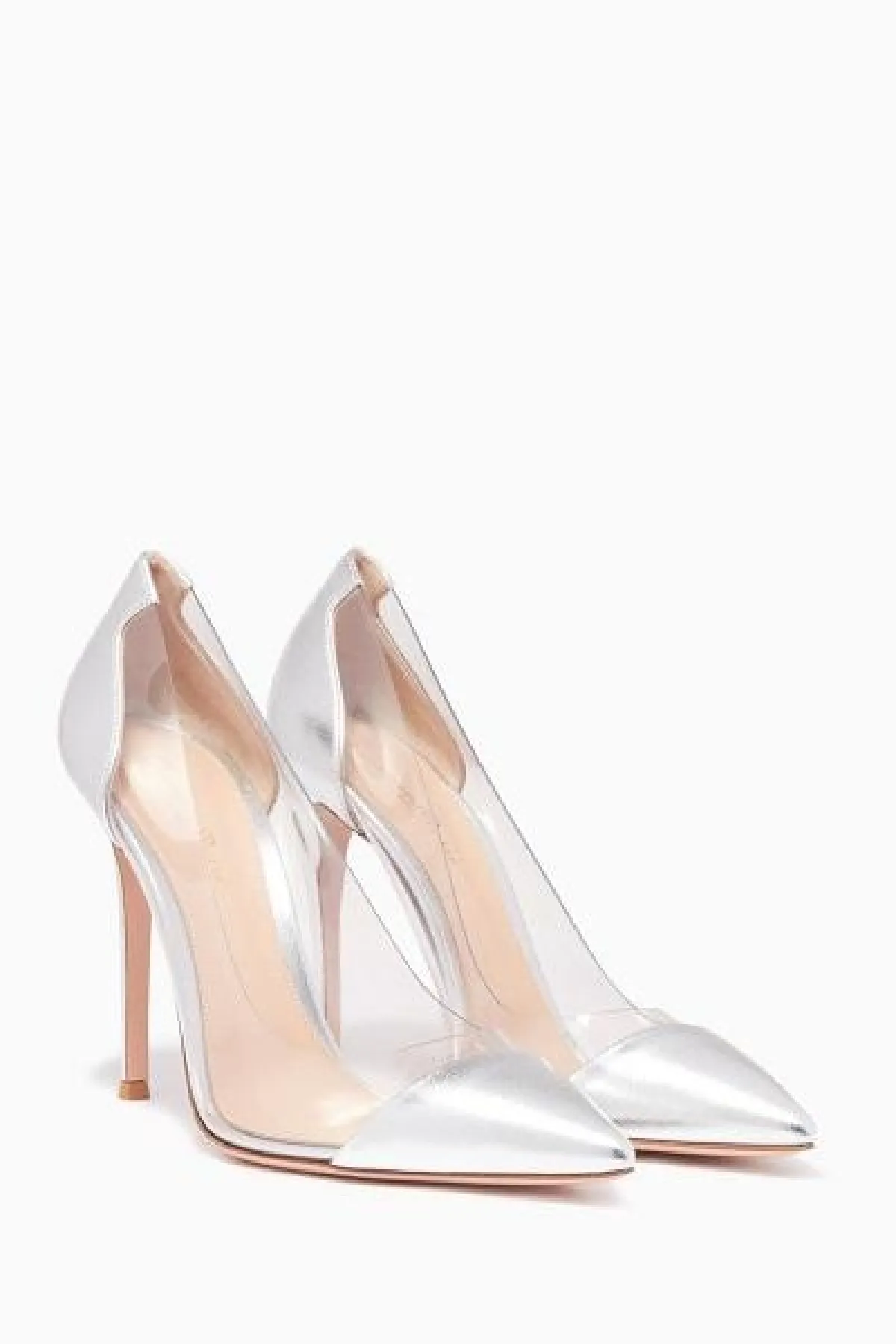 - اخترنا لكِ لإطلالة عيد الفطر هذا الحذاء من أحدث مجموعة للمصمّم جيانفيتو روسي Gianvito Rossi؛ ذلك لتضفي لمسةً أنيقةً إلى إطلالتكِ المسائية. هو حذاء كلاسيكي مصمم من البلكسي، والجلد الفضي اللامع، يتميز بمقدمة حادّة مدببة وكعب رفيع وعالٍ.