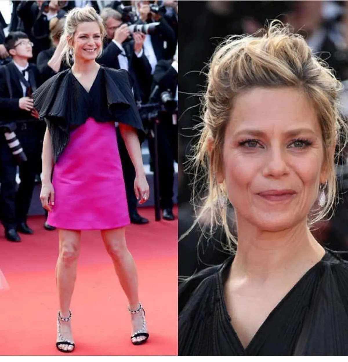 واختارت النجمة فرجيني أفيرا Virginie Efira أيضًا بدلة رجالية مع البليزر الواسع، والصدرية الكلاسية، ولفتنا اعتمادها البنطلون القصير للبدلة، الذي أبرز الصندل الأنثوي المفتوح.