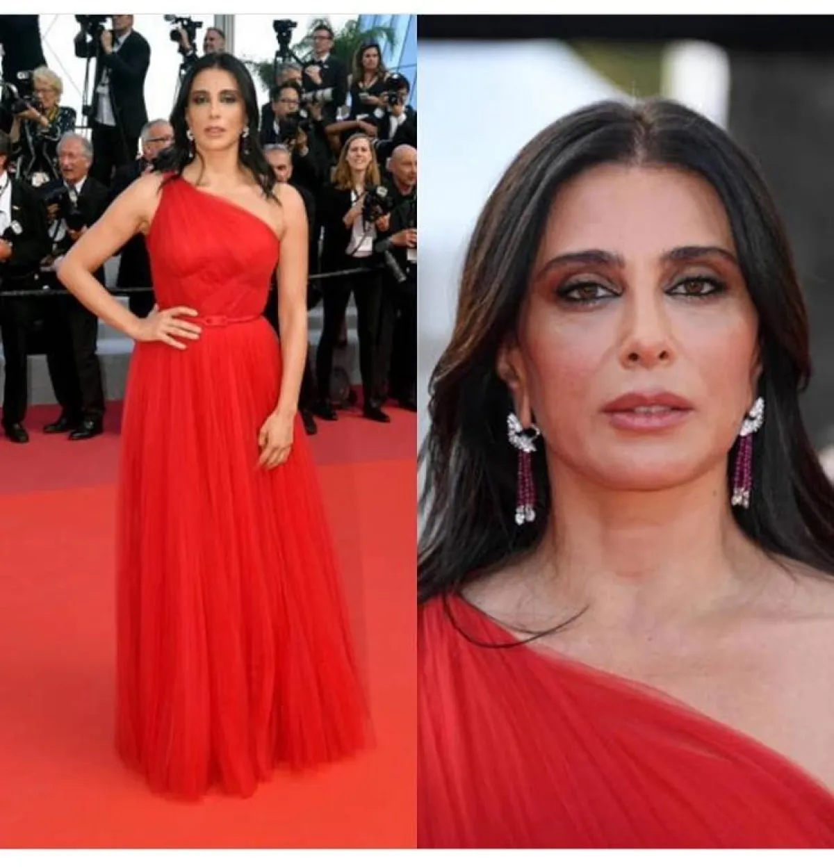 أبهرتنا المخرجة اللبنانية نادين لبكي بالكثير من الفساتين المميزة خلال هذا المهرجان، وكان ختامها مسكًا بهذا الفستان الأحمر من ديور Dior، بصيحة الكتف الواحد مع حزام الخصر الرفيع، زينت معه أقراط أذن من دار كارتييه، لتبدو أكثر جاذبية بلمسات بسيطة على السجادة الحمراء.
