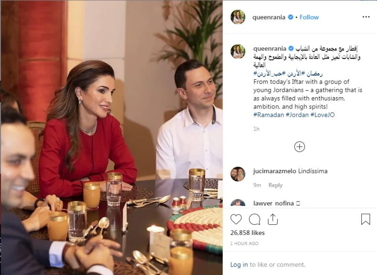أقامت الملكة رانيا العبدالله يوم أمس الأحد في قصر بسمان العامر مأدبة إفطار لفعاليات شبابية من أصحاب الشركات الناشئة والنشطاء والعاملين في مجالات العمل الريادي والتربوي والثقافي والاجتماعي والتطوعي والاعلامي.