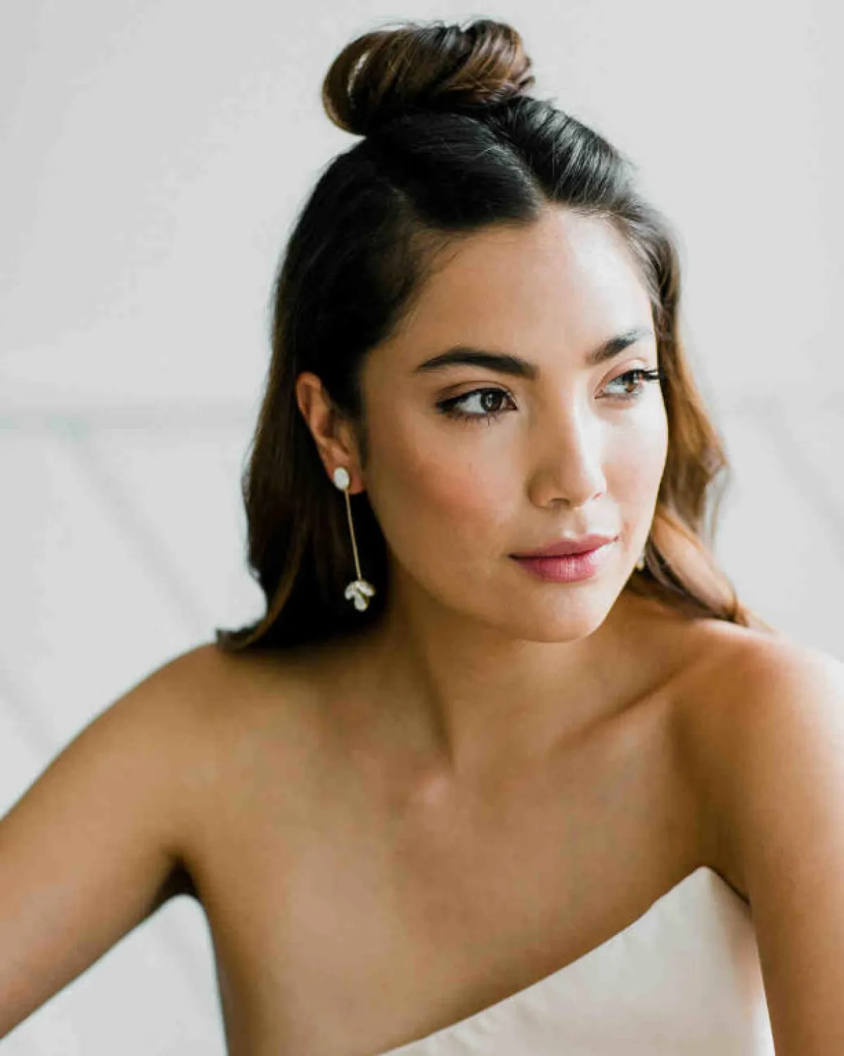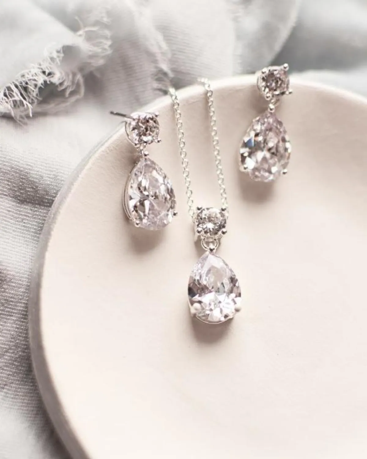 أما إن كنتِ تفكرين بأمر غاية في الرقة، فستناسبكِ السلاسل البيضاء، كهذا الحلق المتدلي بسلسة بسيطة بنهايتها حجر شفاف، أو من الممكن أن تختاري أحجار اللؤلؤ البيضاء لتدمجيها مع الذهب الأبيض.