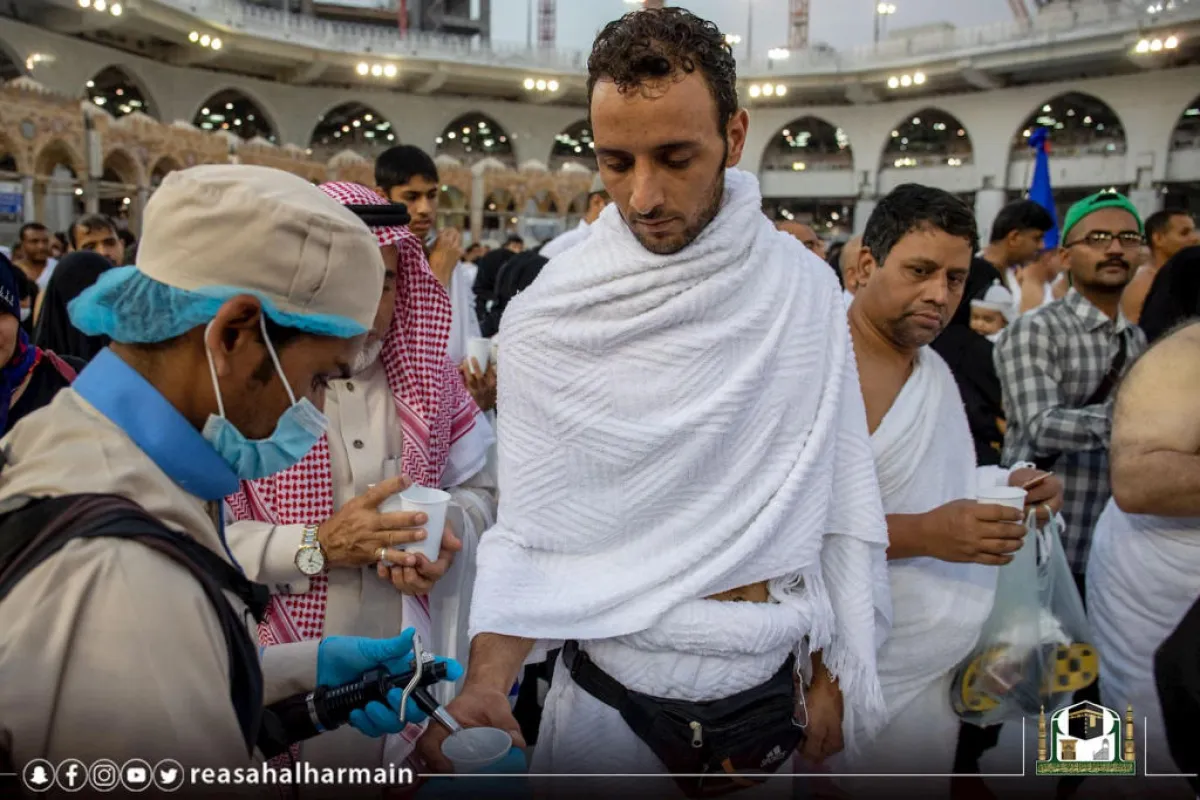 كما قامت الإدارات الخدمية بزيادة الخدمات المقدمة والتي تتضمن (25) ألف حافظة ماء زمزم، وأكثر من (4000) عامل وعاملة لتطهير وتنظيف صحن المطاف وأروقة الحرم وساحاته وسطحه، وتنظيم موائد الإفطار، ومراقبة دخول وخروج الأطعمة إلى أروقة الحرم والساحات