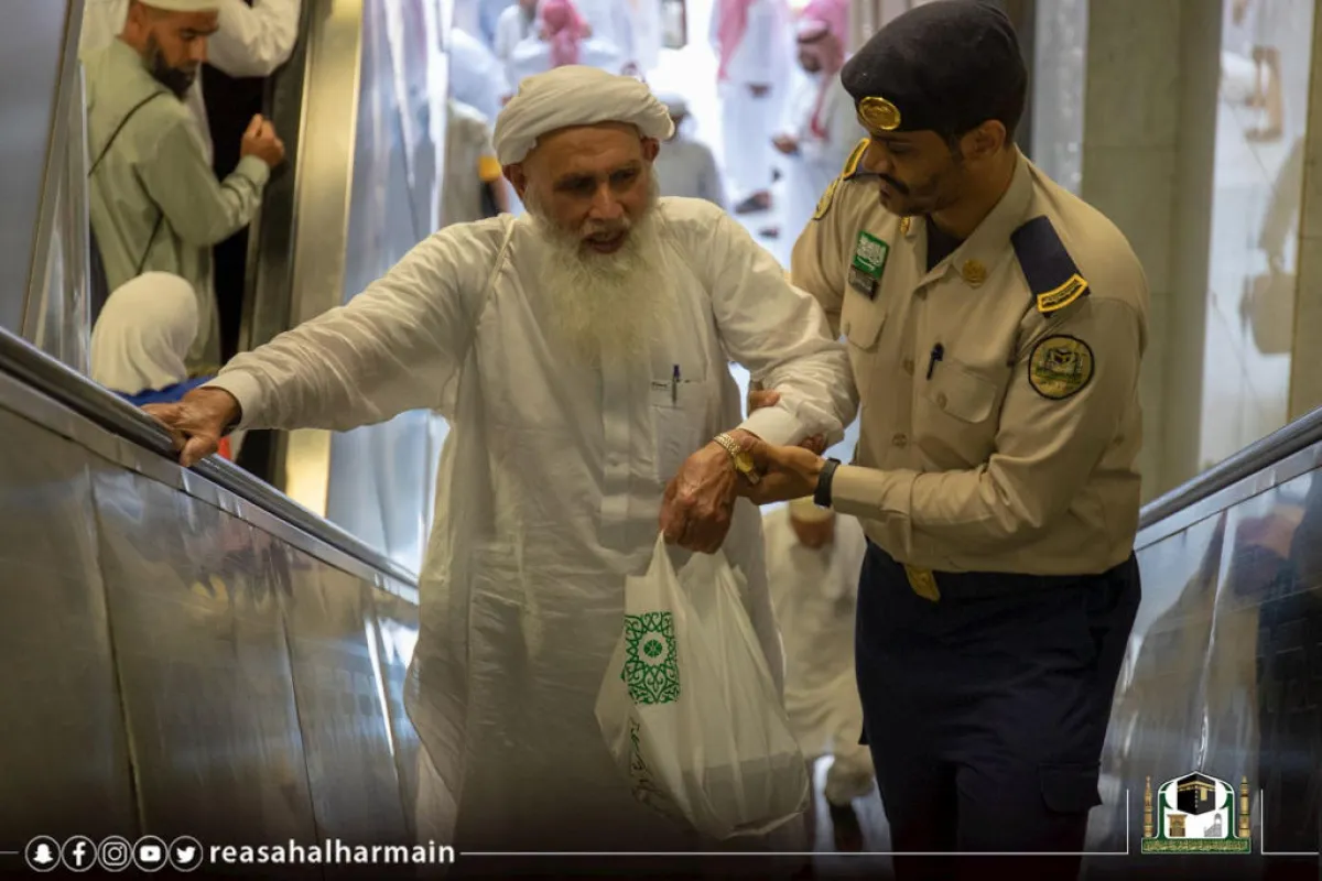 ومنع غير المسموح منها، والحد من ظاهرة الافتراش، وتوعية المفترشين بأضراره وعواقبه، وتوفير العربات الكهربائية (القولف) الخاصة بنقل ذوي القدرات الخاصة وكبار السن، وتهيئة مداخل مخصصة لتلك العربات، ومنع دخول غير المعتمرين من الدخول إلى صحن المطاف، وتسهيل وصول المعتمرين إلى المسعى، وتهيئة الفرش والإسهام في تنظيم دخول وخروج المصلين، وتهيئة الساحات الخارجية للصلاة وتطهيرها والعناية بها, وكل ما يساعد قاصدي المسجد الحرام على أداء نسكهم بكل يسر وسهولة.