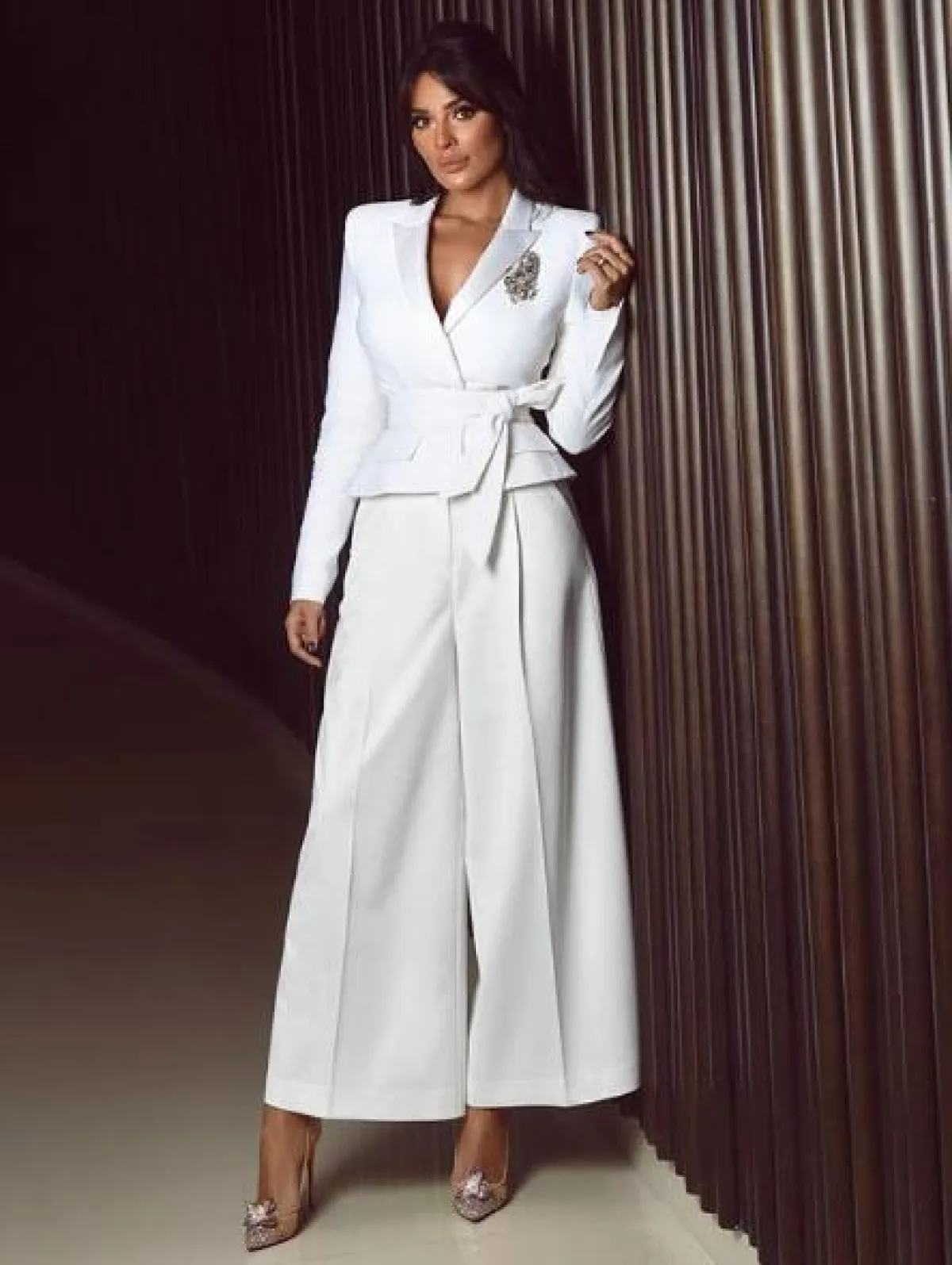 تنسيق أنيق في البليزر والبنطلون القماشي اعتمدته نادين نجيم: