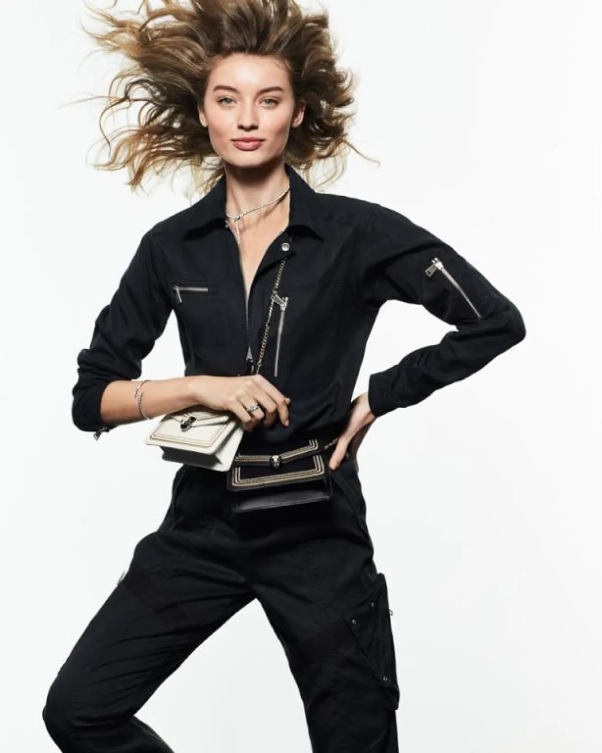 وتبرز أيضاً وبشكل مدهش روحية هذه المجموعة في حقيبة سربينتي دايموند بلاست Serpenti Diamond Blast بأسلوب مبتكر جرئ زاخر بلمسات نهائية تكميلية تعكس أناقة ذات طابع حضري باستخدام مواد فاخرة وتشكيلات لونية مفاجئة غير مألوفة.